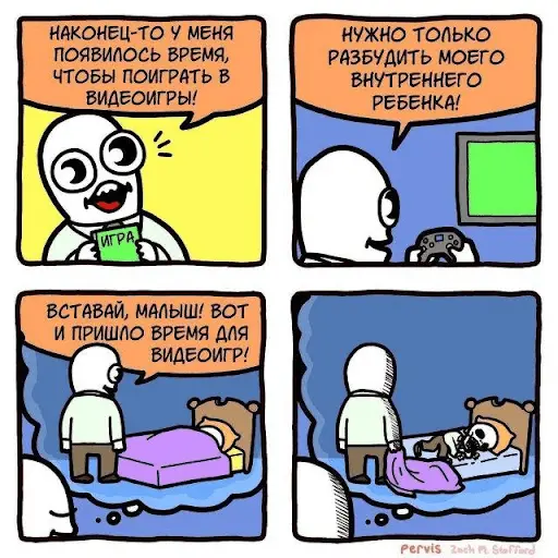 Всё детство и студенчество родители хуесосили игроманию и устраивали скандал, когда замечали, что ты играешь в игры. @ 25 лет. Съехал на свою квартиру. Купил топпеку. @ Скучно играть в игры. @ Со скучающим ебальником смотришь летсплеи, ретроспективы и прочие игроанализы.