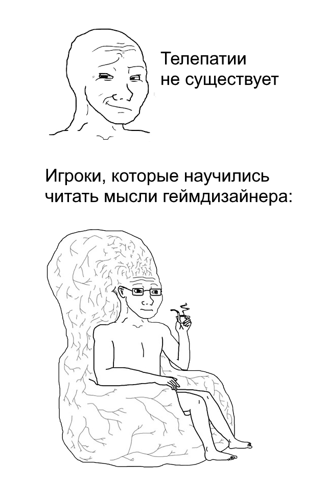 ПРОИГРАЛ 3 РАЗА @ ПОХОЖЕ, ВЫ СОСЁТЕ В ЭТОЙ ИГРЕ @ ПЕРЕКЛЮЧИТЬСЯ НА ЛЁГКИЙ РЕЖИМ? @ ВЫБИРАЕШЬ "НЕТ" @ ИГРАЕШЬ ДАЛЬШЕ @ ВСПОМИНАЕШЬ, ТОЧНО ЛИ ДО ЭТОГО УРОВЕНЬ БЫЛ ТАКИМ КОРОТКИМ @ ВРАГ В ТОЛСТОЙ БРОНЕ ПАДАЕТ С 5 ВЫСТРЕЛОВ, ХОТЯ ДО ЭТОГО ТЫ ВЫСАЖИВАЛ В НЕГО МИНИМУМ 10 @ ОГНЕМЕТЧИКИ КАК БЫ НЕВЗНАЧАЙ СПРЫГИВАЮТ В ПРОПАСТЬ @ БОСС СТРЕЛЯЕТ СЕБЕ В ГОЛОВУ, ХВАЛЯ ТЕБЯ ЗА НЕВЕРОЯТНУЮ МЕТКОСТЬ @ АПТЕЧКИ САМИ ЗАСКАКИВАЮТ В ИНВЕНТАРЬ ПО ДВЕ-ПО ТРИ ВМЕСТО ОДНОЙ @ ВСЕ НПС НАЧИНАЮТ ТЕБЕ АПЛОДИРОВАТЬ @ ТЫ ВСЁ ЕЩЁ НЕ УВЕРЕН, НОРМАЛЬНО ЭТО ИЛИ ИГРА ТЕБЕ ПОДДАЁТСЯ