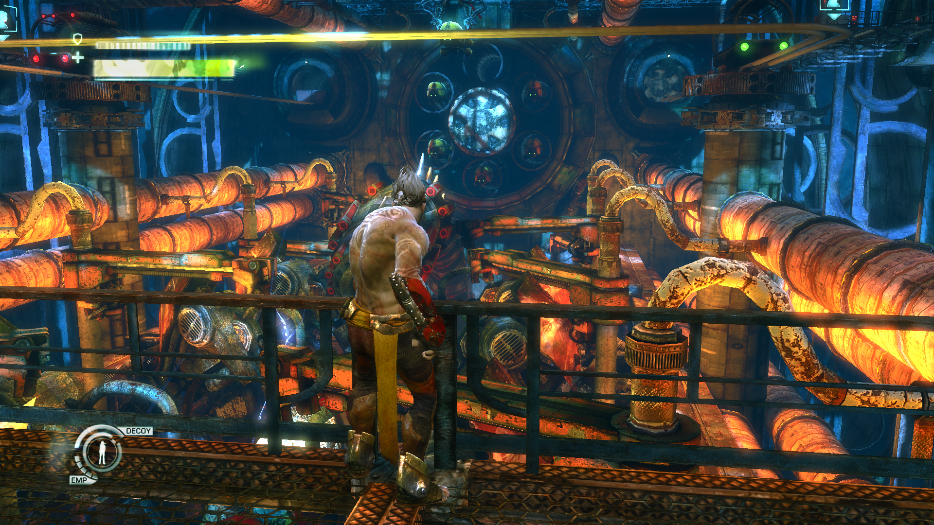 Даже выделю отдельным пунктом. Как только мы стречаем свинью - игра резко скатывается, как геймплейно, так и нарративно. Вместо живописного разрушеного города начинаются канализации, свалки и прочее серо-коричневое, постапокалиптическое, индустриальное окружение, которое ничем не выделяется на фоне других игр. Геймплей делает упор на платформинг и дурацкие "паззлы". Даже есть секция с турелью - куда же без нее в ПС3 игре? Диалогы делают паунс в бочку в говном. Из того, что было в первой половине, можно справедливо критиковать лишь то, насколько быстро основные персонажи сблизились: в один момент Манки это циничный титан одиночества, спустя 15 минут он уже готов "во что бы но ни стало помочь тянке добраться до цели". Я, конечно, понимаю всю мощь писика, но это все равно было показано слишком резко - без переходного момента. Как и то, что тян в какой-то момент решила не деактивировать браслет. Манки уже и так был готов ей помогать, но сценаристы все равно решили беспричинно выставить ее в плохом свете? Не очень понятно. Это, как по мне, был идеальный момент для подобной сцены, а не за 15 минут до конца игры. Сама свинья - один из худших персонажей в играх, клишированный от и до. Максимально соевый юмор, неуместные шуточки про говно и пердеж каждые 2 минуты, какие-то нотки ревности, из-за чего он кажется еще более неприятным персонажем (даже не знаю на какую реакцию метили разрабы). Ну и в целом я уже видел такой архетип персонажа тыщу раз, но выполненного в разы лучше. Можно даже сравнить с еще одной свиньей из Beyond Good and Evil.