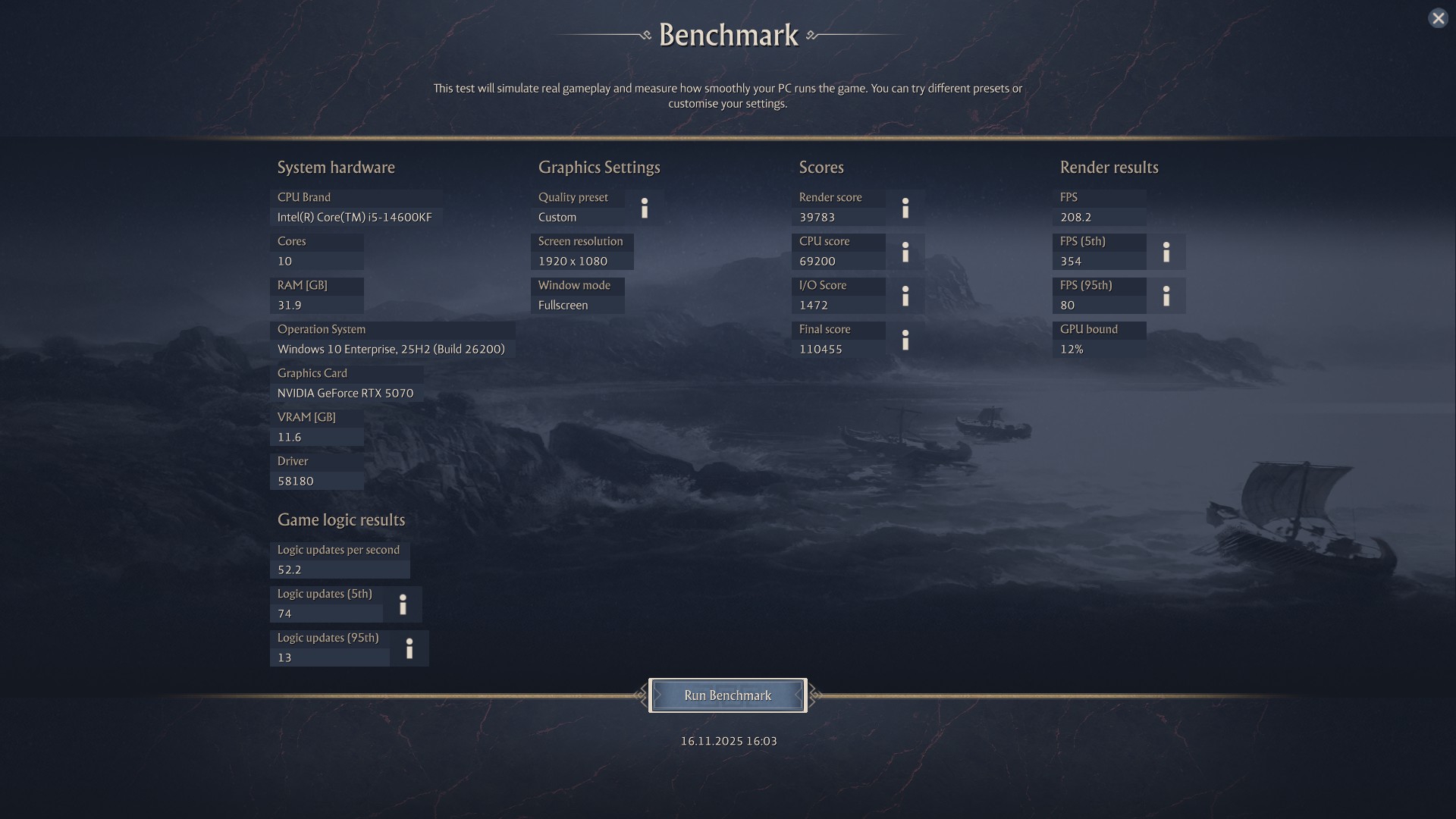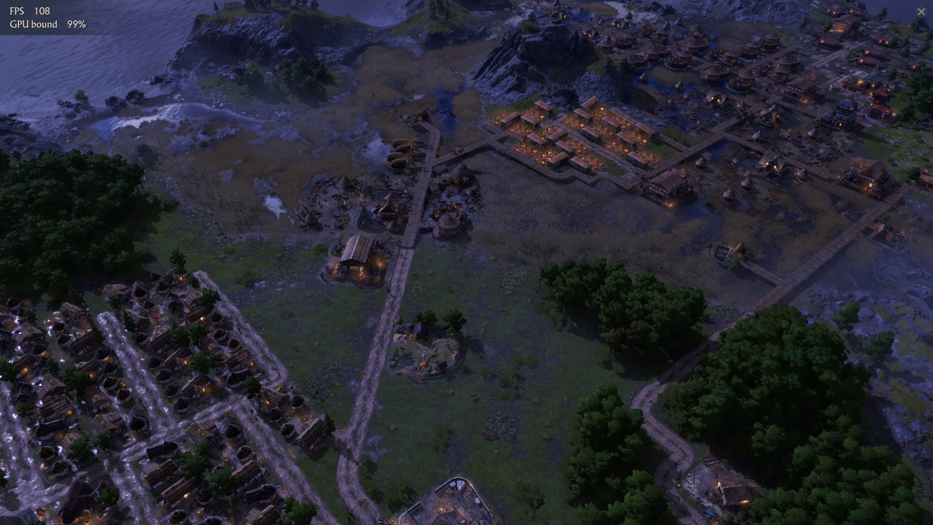 Надо конечно ещё поиграться с настройками, но уменьшил свет и тени до высоких и о чудо, игра больше не ебёться в 240 ватт, а спокойно потребляет 100. Полагаю опять кто-то где-то положил хуй на оптимизацию. Водичку и текстурки тоже слекга порезал, в лейтгейме будет виднее.