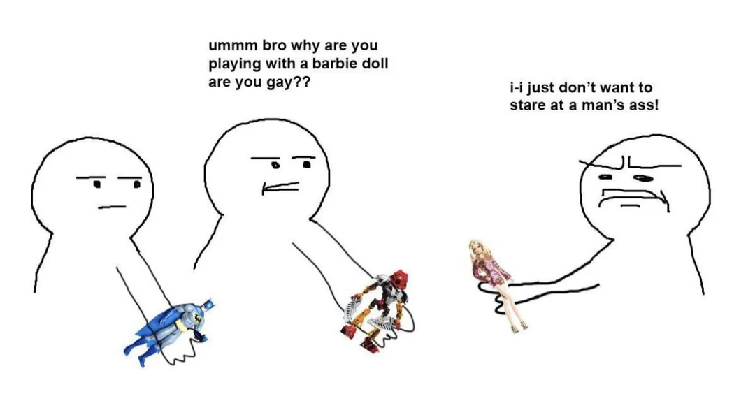 Пикрил буквально. Вглядываются в мужскую жопу только педики, а базовички берут мужика и ебут там все.