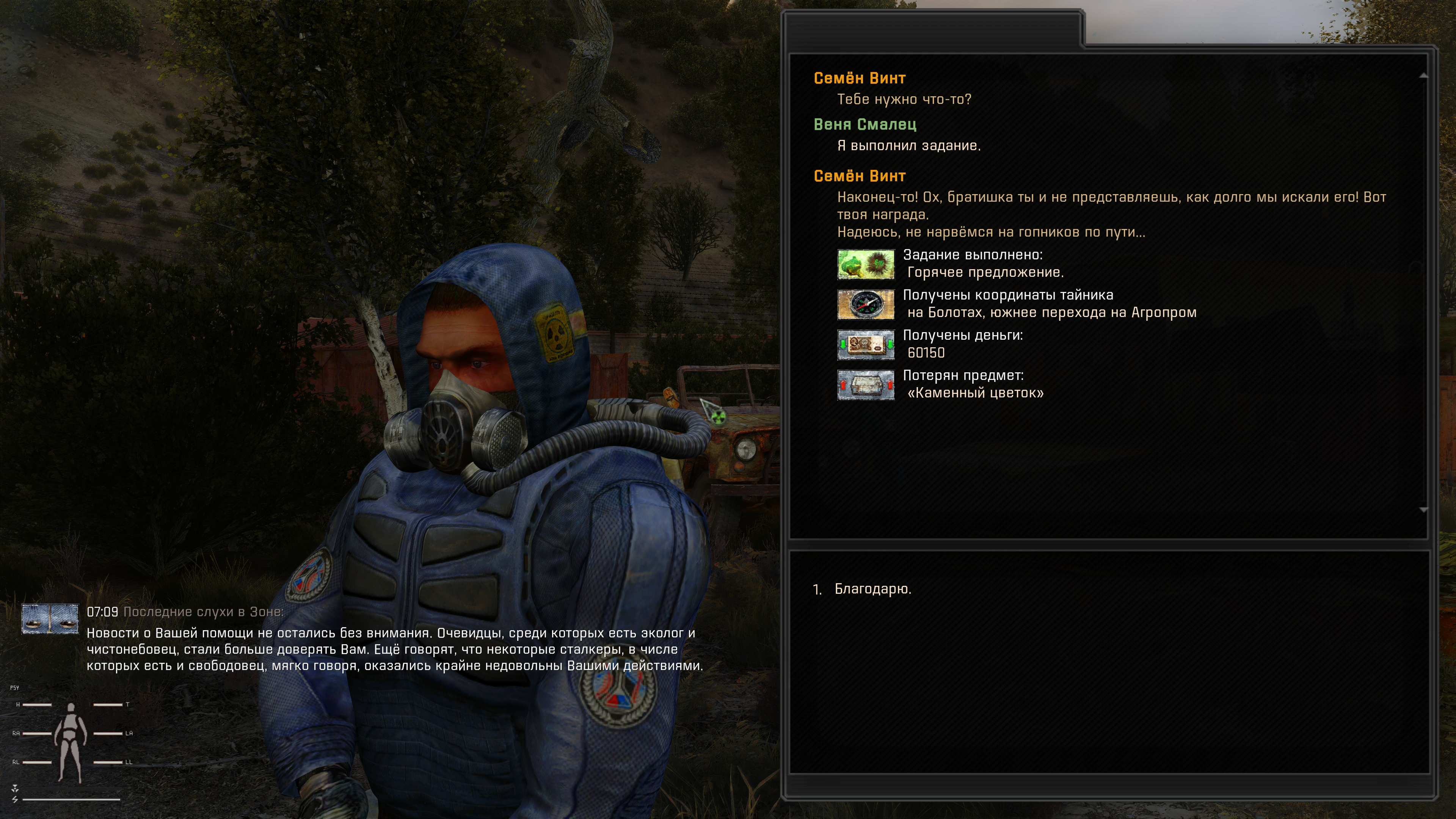 Пришлось-таки штурмовать цементный завод с бандитами т.к. выдали заказ на убийство бандоса. Это был пиздос. Я чёт расслабился и пошёл сначала до наступления темноты, эти бляди меня спалили и половина банды пасла меня до укеплённой точки с вагончиками по пути в Янов. Пришлось держать оборону в одном из вагончиков, еле отбился. Дальше ждал до 2 ночи, а то твари зело меткие. Решил перенести базу на Скадовск, даже место уже нашёл. Осталось только заработать достаточно денег, чтобы на своих двоих не таскать всё нужное. Лишние оружие и броню придётся оставить на Янтаре, конечно, но материалы, артефакты и части монстров нужно обязательно забрать. С другой стороны, можно продать учёным большую часть артефактов, только их придётся довести до 99% состояния сначала. Зацените, какой лютый жир с одного арта хорошего качества падает. Ещё обновил оружие, взял рпк. Но к нему теперь нужен нормальный прицел, потому что оптика на пулемёте это полное говно из-за отдачи. Я лучше возьму винтовку с хорошей оптикой в отдельный слот.