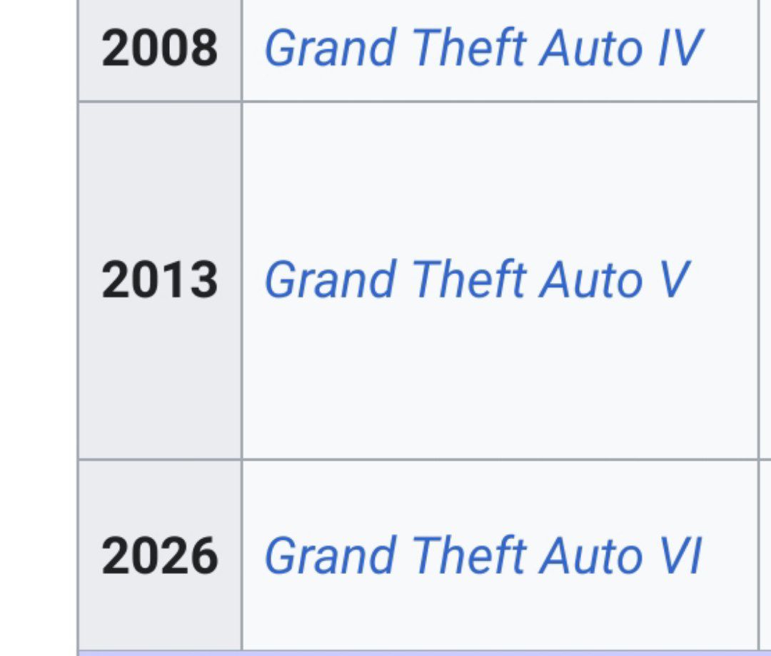 >>9911677 Так по логике этой пикчи гта6 должна была выйти в окне между июлем 2025 и январём 2026, спустя 3 полугодия, как гта5 и рдр2. Но она выйдет КАК МИНИМУМ в конце 2026, плюс если посмотреть на переносы, то у гта5 он был один, а у рдр2 уже два. Тут можно сделать что по вектору в гта6 должно быть три переноса, а мы увидели только два, а значит ещё может быть перенос на весну-осень 2027 года.