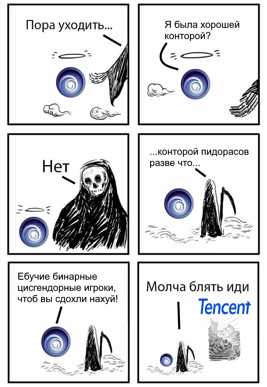 Тенцент уже владеет частью акций новой компании, которая владеет правом на большинство экзов с возможностью выкупа дальнейших частей в случае провала. Оставшаяся часть юбиков отдана на раздеребание рынку и будет выкинута на мороз. Эффективный управленец доигрался в сервис-казинычи, теперь все что он может - это продавать все что у него есть.