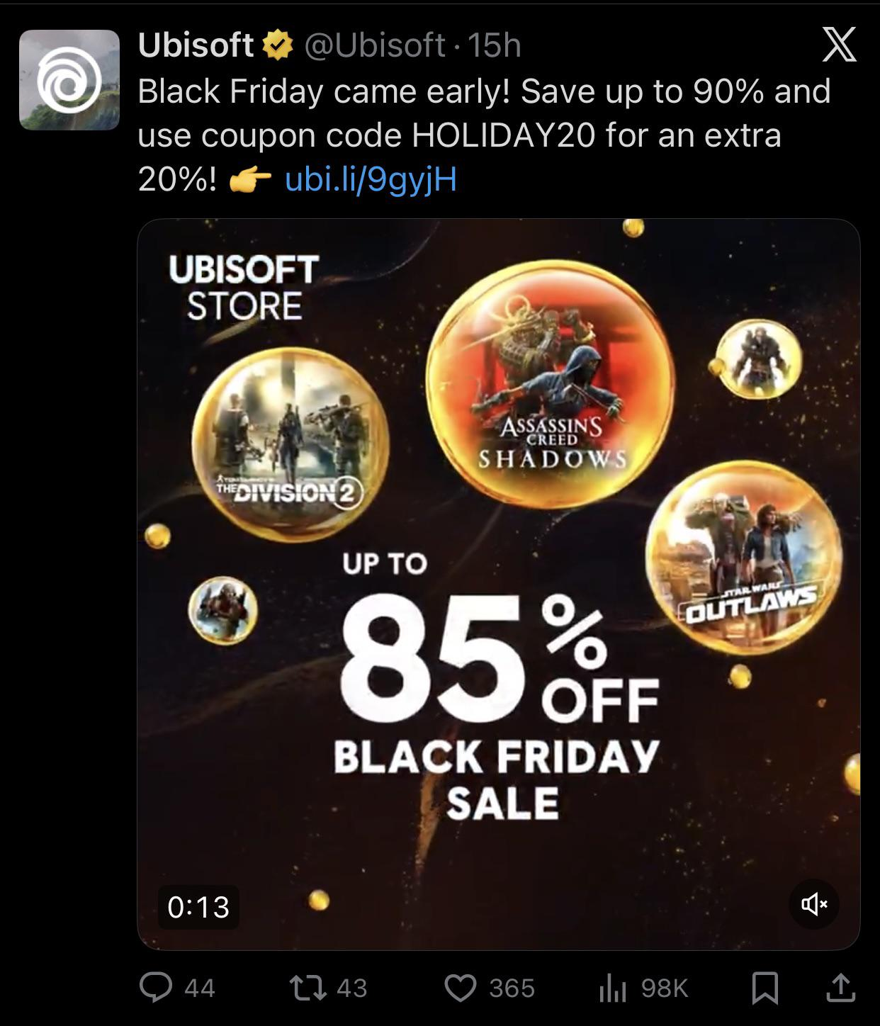 >>9926338 (OP) Да нихуя не будет, ну максимум с рынка акций этих съебут как EA. Дальше продолжат клепать свои игры. Им надо в 26м ремейк принца выпустить, там ещё и ремейк сплинтер селла, новый ассасин про ведьм в разработке, новый фаркрай в разработке о котором недавно утекала инфа. Я хз нахуй вы до сих пор верите, что они закроются лол.