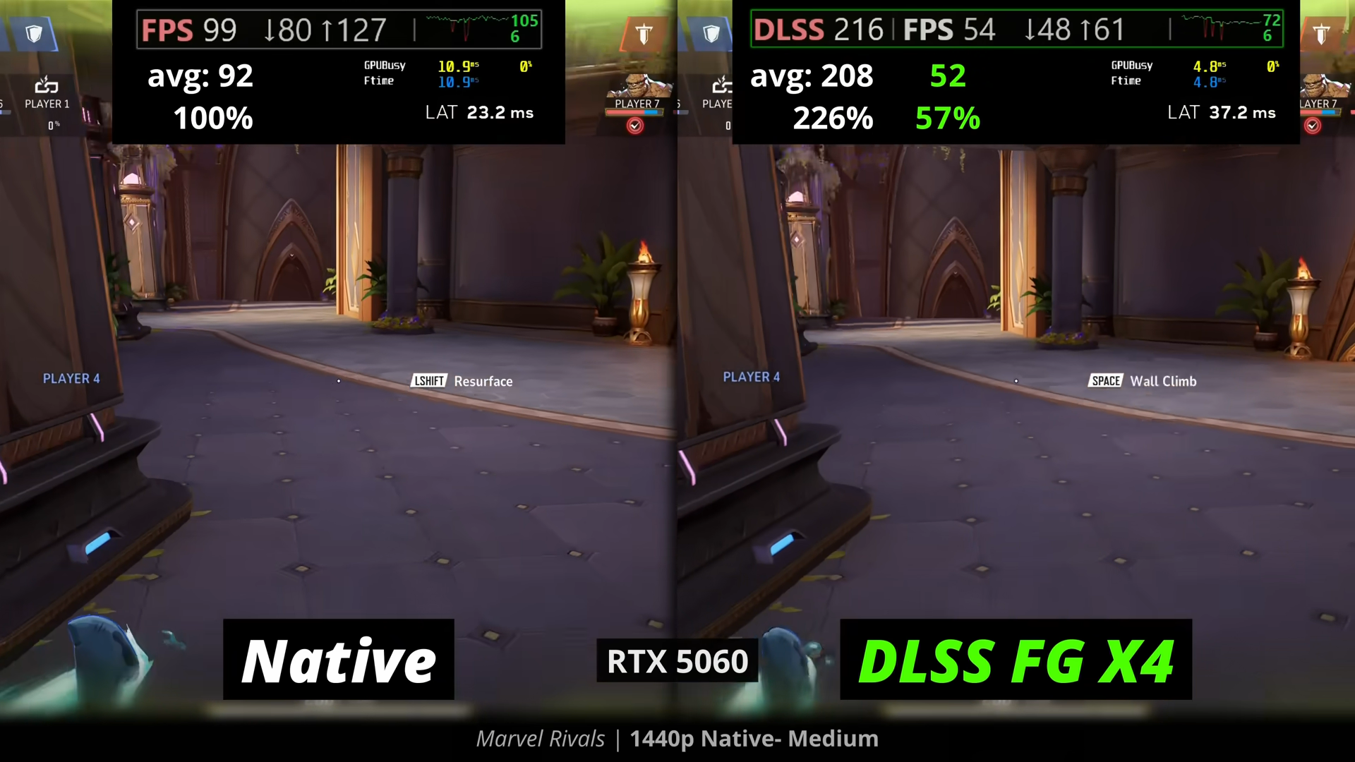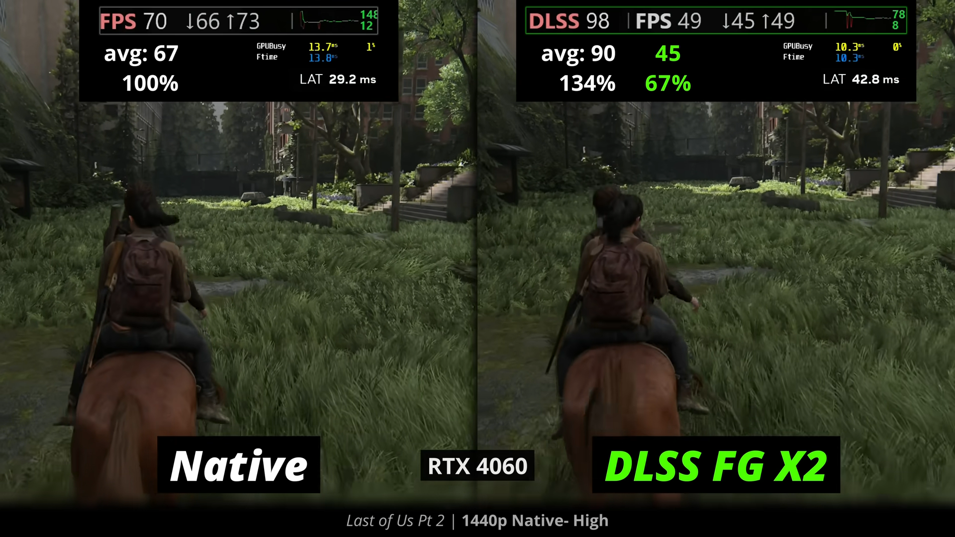 >>9943454 Разница есть но не критична. Стандартный длсс апскейл слегка мылит картинку а фремген ничего не мылит но может давать шлейфы, на скорость отклика если правильно локнуть фпс через панель нвидиа или риватюнер в котором выбран рефлекс генерация не влияет. Ну или с анлокнутым фпс как даун бегать. Если неправильно локнуть фпс при фреймгене кисельный пиздец получается.