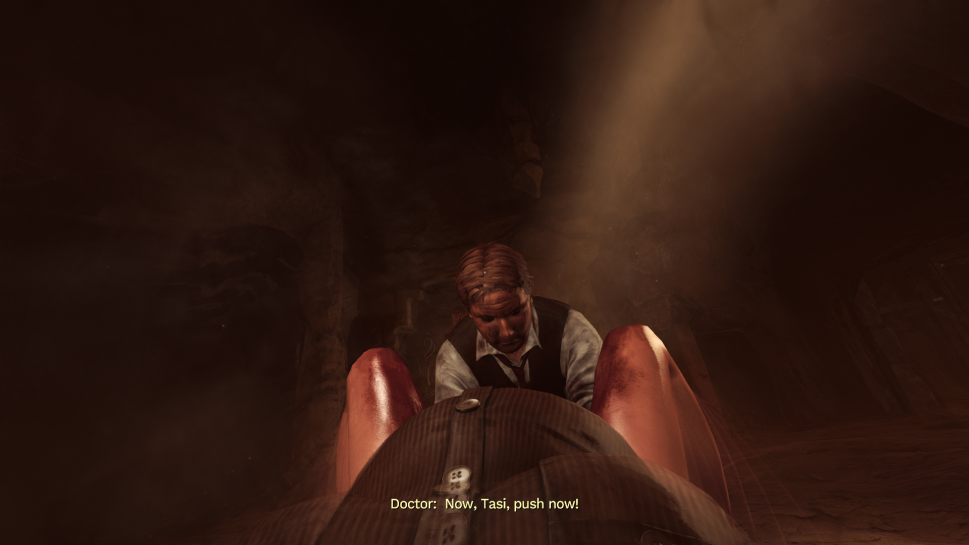 Сюжет. Самолет с исследовательской группой упал в пустыне, главная героиня просыпается с амнезией (!) и начинает по горячим следам расследовать судьбу этой самой группы. Почему я считаю его хуетой? Во-первых, тебя заваливают записками и флешбеками в натужных попытках заставить сопереживать персонажам. Как игроку тебе на них совершенно похуй, а учитывая размер группы (14 человек, включая гг), то ты и вовсе начинаешь забывать имена и отличительные черты. Единственные персонажи, которые запомнились - 2 пидораса (по очевидным причинам) и непосредственно те, кого ты позже встретишь лично. Во-вторых, незатыкающаяся главная героиня - она комментирует каждый пук. Думаю не нужно пояснять, что это неуместно в хорроре и почему в других играх, как правило, у гг по полторы реплики на всю игру? В-третьих, мощнейшие ЯЖЕМАТЬ вайбы. Весь сюжет можно уместить в "ребенок - это самое важное для матери". Тебе будут напоминать об этом каждые 2 минуты, вплоть до самого конца. Одна из механик - погладить беременное брюхо главной героини (чтобы понизить уровень паники), что каждый раз сопровождается обращением к малышу и улюлюканьем. По ходу игры стадия беременности главной героини увеличивается, в какой-то момент она дает малышу имя, а ближе к концу у нее отходят воды и начинаются схватки, с сопутствующими криками, которые ты вынужден слушать 5 минут подряд, медленно перемещаясь вперед в заскриптованном сегменте. Ну а затем мы натурально РОЖАЕМ и кормим ребенка грудью. Я хотел бы сказать, что сюжет просто "не для меня", но в данном случае "тянет блевать от увиденного" подходит больше. В-четвертых, говно вместо озвучки. Надрывные, неестественные, переигрывающие голоса, да еще и с уебищным акцентом.
