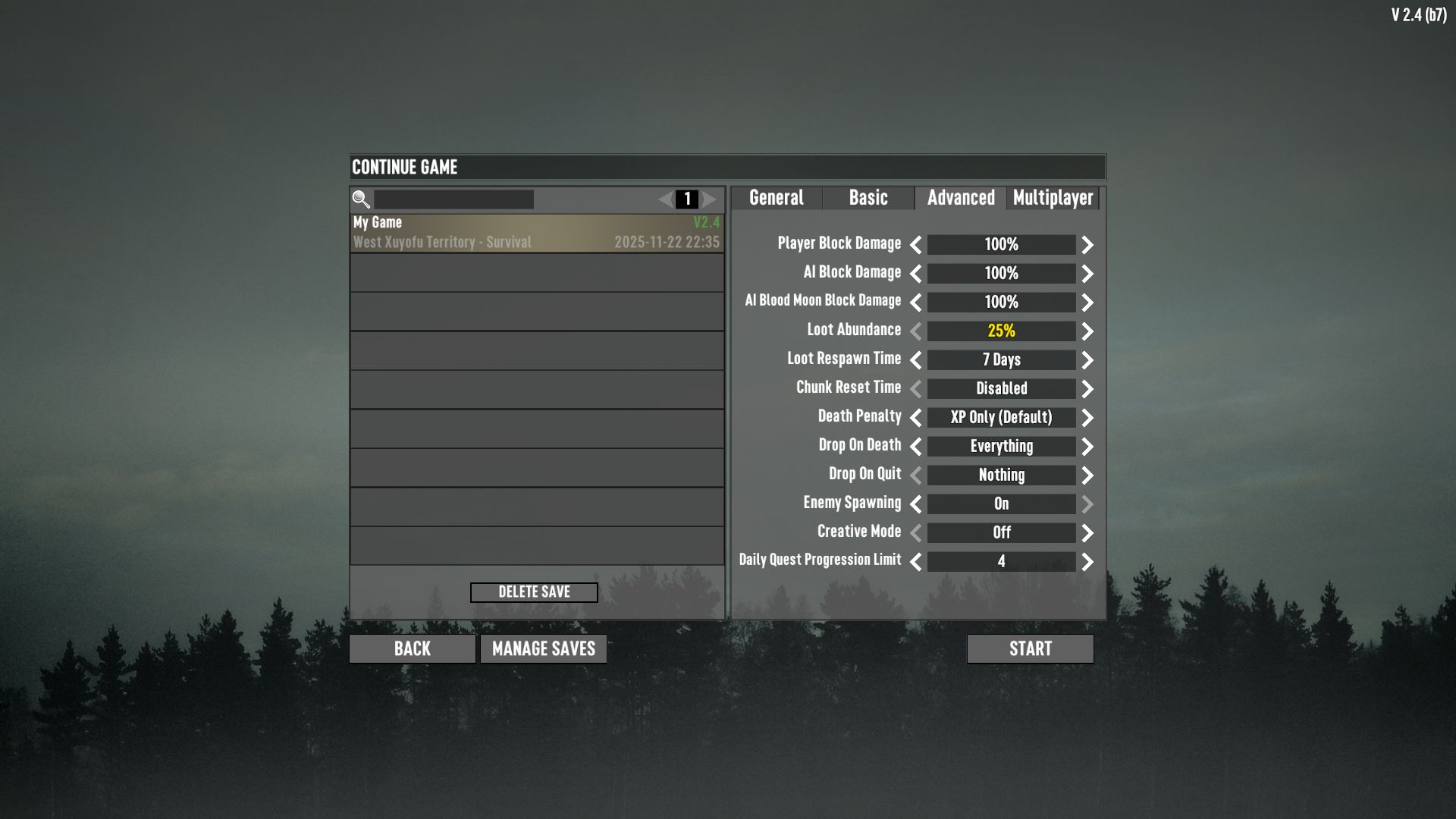 >>9947100 Есди что тут да.. есть тонкая настройка, хотелось бы побольше ползунков, но что есть. Кровавые луны и эйрдропы отключаю. По советам сделал только 25% спавна лута. Сложность не на максимуме потому что это пиздец убивать их с 2-5 выстрелов с раскачкой и с дигла в упор (заебался). Модов не ставил. Обычно полоски хп через конфиг ставлю и это ублюдское бесячее перекрестие вырубаю.