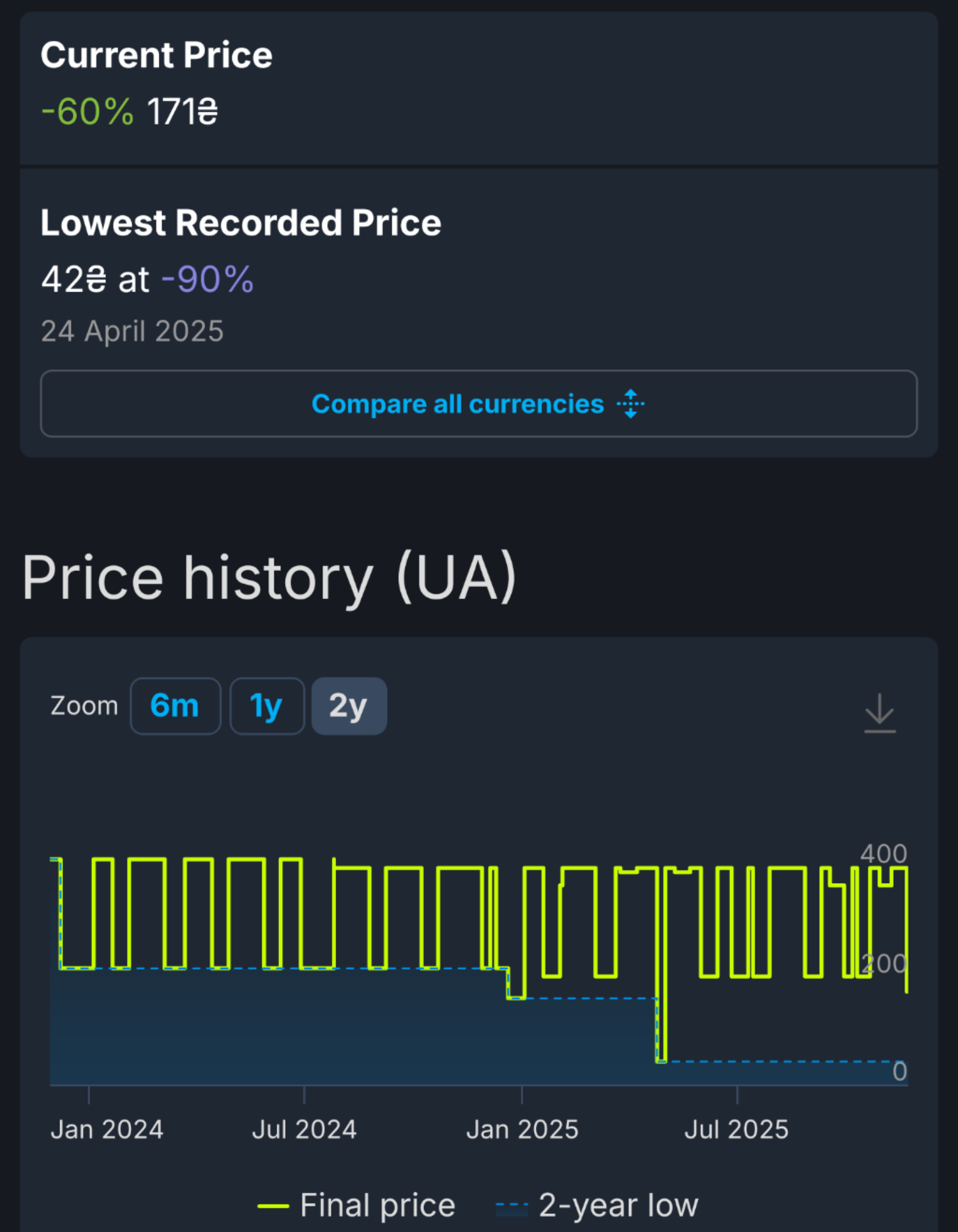 >>9947183 Ну и зря там кучу игр раздают и не всегда инди мусор пиксельный, а иногда и крупные релизы. Я все игры, которые у меня уже есть в егс, или в юплее, или в гоге, удаляю из вишлиста стима чтобы случайно их не купить, так как мне в принципе похуй в каком ларьке игру запускать, игра есть игра. Но есть ебанаты которым принципиально в стиме играть