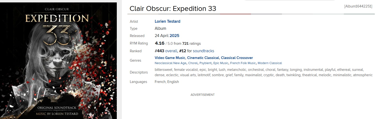 >>9943905 Держи список, что игралось на концерте их больше 5 и они все не повторяются, прикинь. Это далеко не все, в игре есть крутая электронная музыка в некоторых сражениях, а также рок-опера при финальном сражении с Ренуаром. Alicia Lumière - The Departure Lumière - Nocturne pour Lumière (Violoncelle) Spring Meadows - Linen and Cotton Spring Meadows - Battling Breeze Spring Meadows - Beneath the Blue Tree Spring Meadows - Get Up! For Lumière! World Map - Taking Down the Paintress Flying Waters - Goblu Flying Waters - Rain from the Ground Gestral ViIllage - Gestral Merchant Une vie à t'aimer Gustave Forgotten Battlefield - Dualliste Lost Voice Sirène - Robe de Jour Sirène - Poème d'Amour Aline We Lost (feat. Victor Borba) Une vie à peindre Maelle Lumière