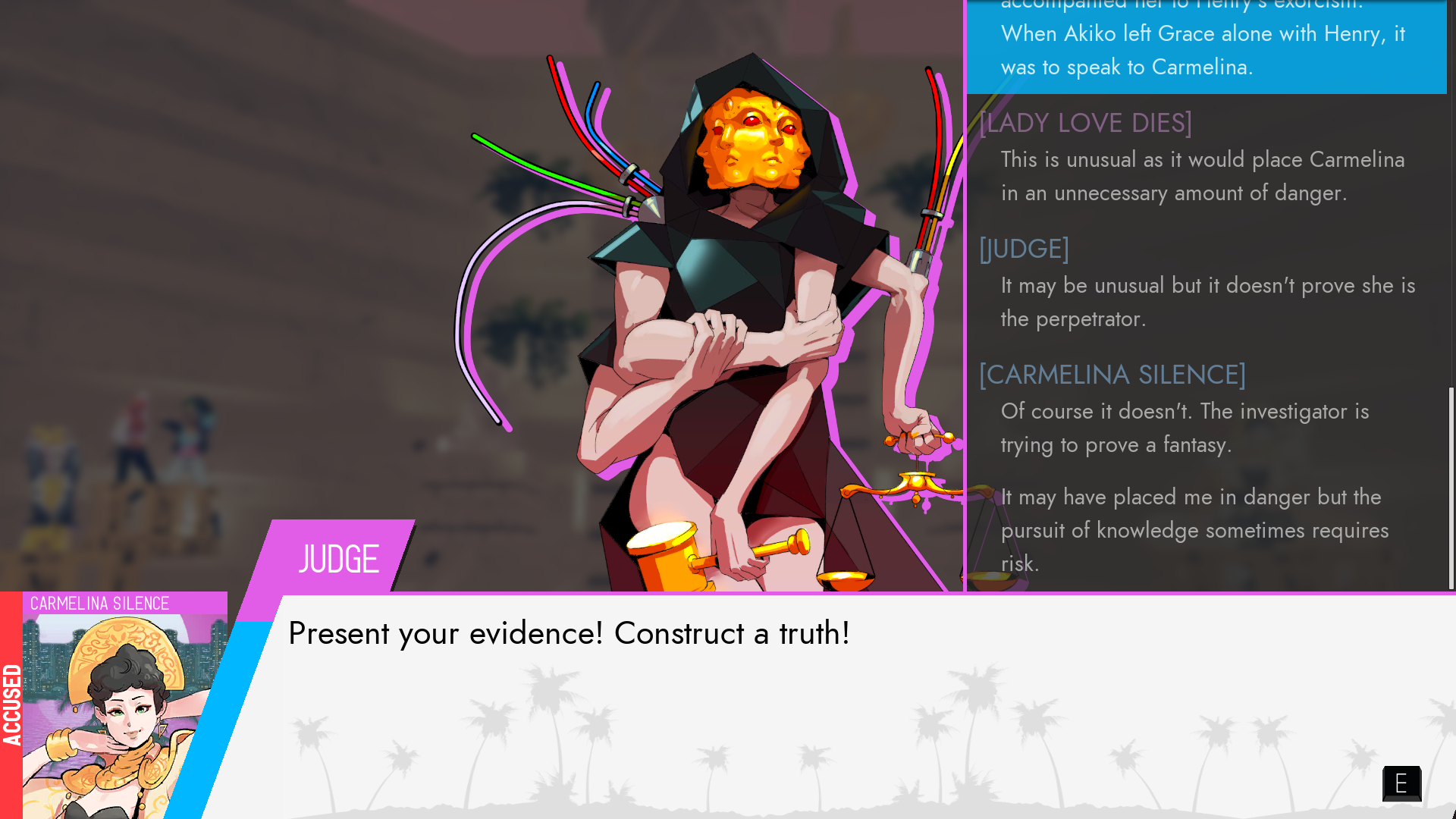 Могу сказать, что у некоторых элементов этой игры есть огромный потенциал. Во-первых, поиск улик в опенворлде. Ты можешь забрести непонятно куда и найти там что-то суперважное, меняющее суть всего дела. Вот это чувство, когда случайно нашел улику в отдаленном месте, а потом бежишь обратно на "допрос" этого НПС, в ожидании узнать что-то новое - действительно уникальное. Подобное вообще есть где-либо? Насколько я знаю, в Shadows of Doubt нечто похожее, но там рандомная генерация, что автоматически ставит крест на этой игре для меня лично. Во-вторых, во время финального слушания ты можешь повесить преступления на невиновных людей, если нашел нужные улики и правильно их выбрал. Звучит прикольно, но насколько это работает конкретно тут? Понятия не имею. Ну и на этом в принципе все. Ах да, финальная оценка - 0/10. В это невозможно играть серьезно, в это невозможно играть иронично. Даже нельзя "кайфануть от того, насколько игра плохая", что также является своего рода формой развлечения. Возможно устрою прохождение их следующей игры под названием "Promise Mascot Agency" - настолько я пригорел. Даже стало интересно, что трансопидоры слепили в своем следующем проекте.