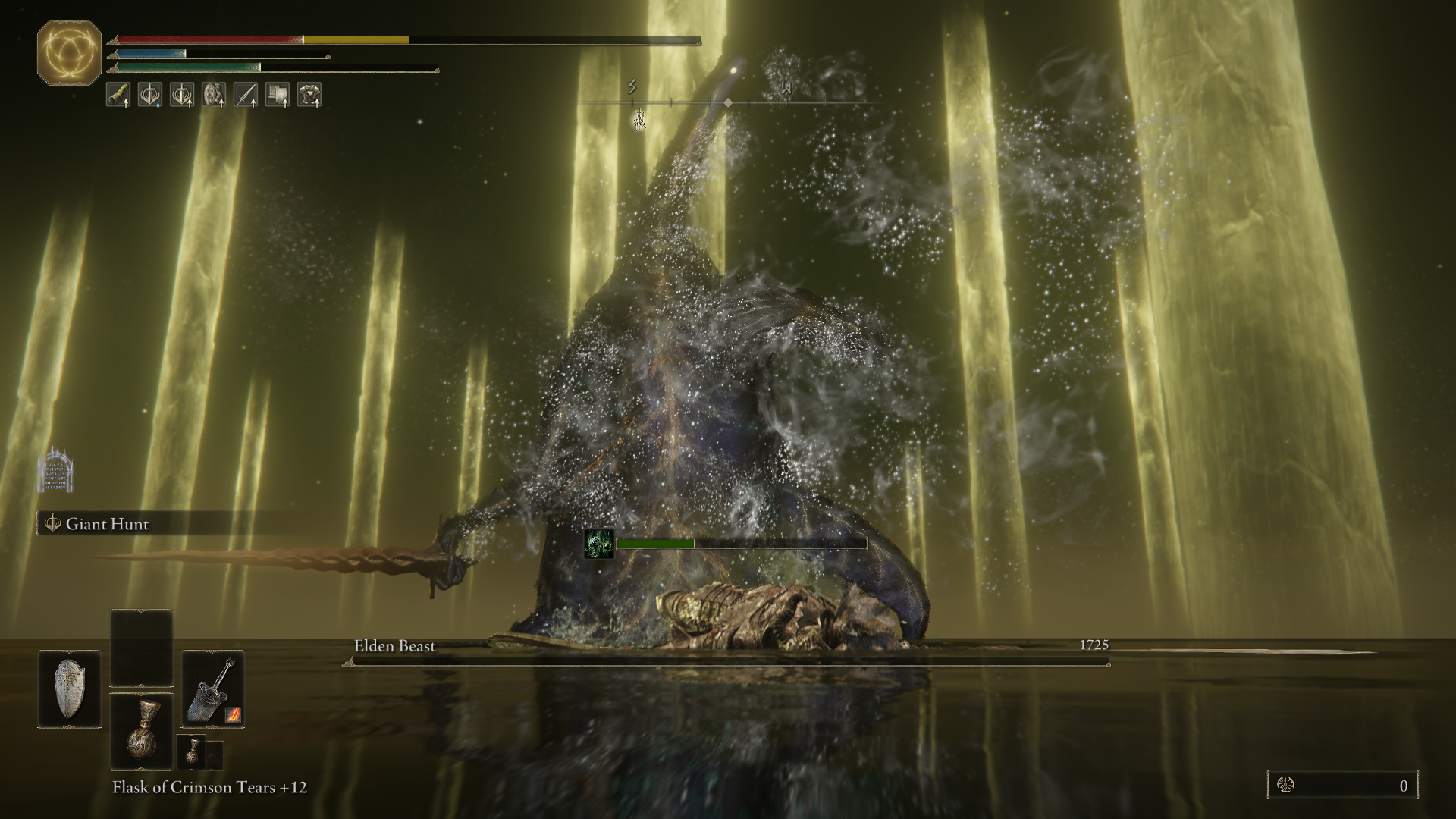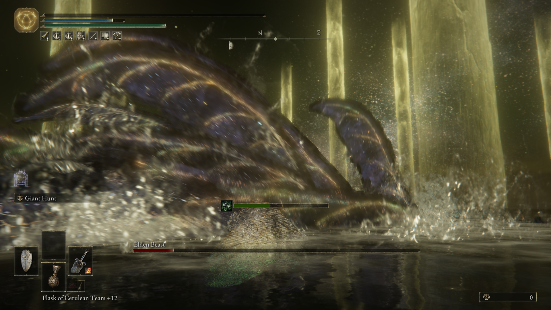 Не тот скрин, вот убийство. На релизе я был жестко недокачен, 40 уровней, я даже со слезой не прошел, мог иногда убить Радагона кривыми мечами, но не часто. Разозлился и пропускал его тренером, выливая фляги. А сейчас затащил в соло. Алсо, попробовал перекачаться в мага, а хуй че ты сделаешь Радагону, даже кометой, если только идеально перекатываться, хотел убить Биста метеорами, а хуй, он на 75% сразу убегает. Мб если чуть позже кастануть. Плюнул и вернулся к мили.