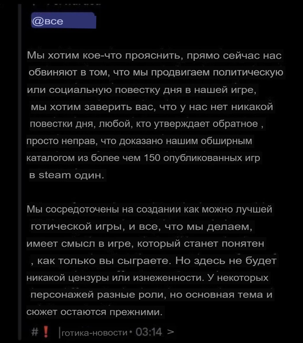 >>9949098 Бойкоты в связи с хуевой рекламной кампанией почти не работают в случаи ААА тайтлов, где прибыль измеряется супер лярдами. А когда речь идёт про около АА игру, которая в любом промо давит из себя "ну, ребята, это же Готика, камон. Старая-добрая" - в таком случаи, бойкоты реально могут сыграть не последнею роль в плохих продажах. И так как это около АА игра с бюджетом пачки "Емель" и двух бутылок "Доброй колы", без лютого финансирования инвесторов из Блек Кок - за продажи эти ребятки трясутся. Как и должно быть.