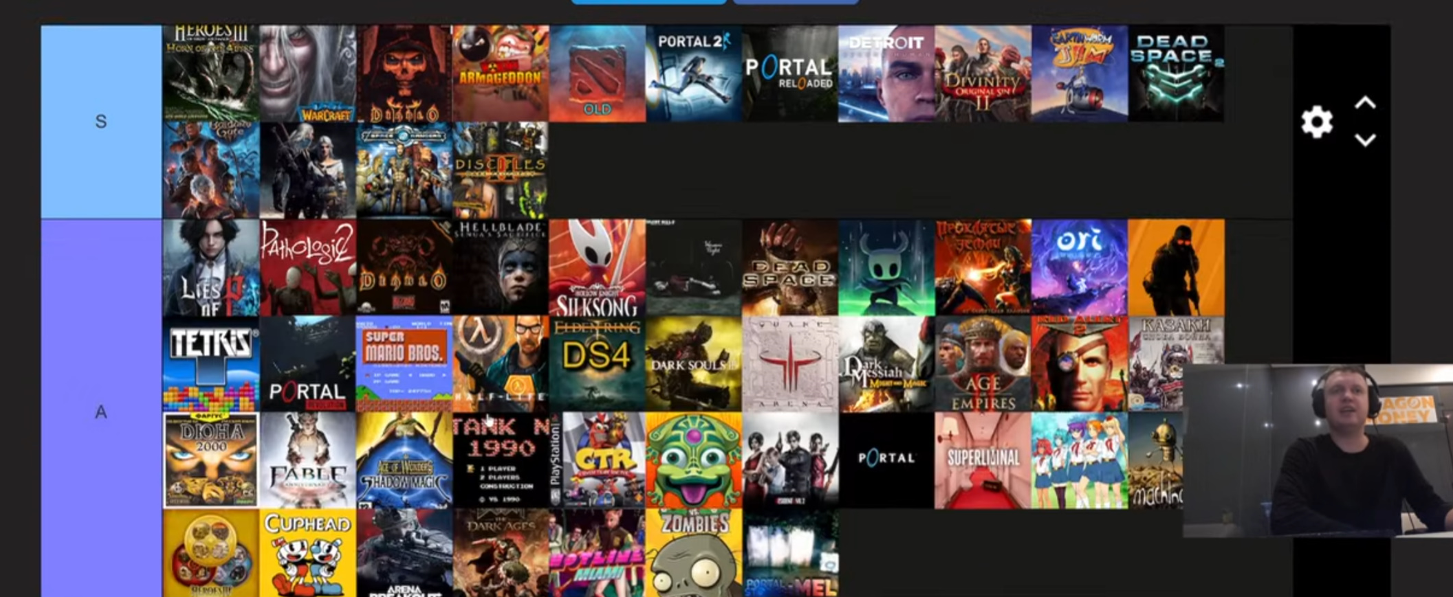 Дебил начитался всяких ТОП 100 ЛУЧШИХ ИГР МИРА и запихал в свой топ не те, которые лично ему нравятся, а те которые любят критики. Особенно показатель этого это >Портал 2 и >Бальдурс Гейтс 3 В топ-1.