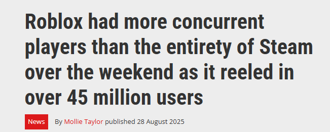 >>9945285 Ага видели мы эту статистику Сони вне стима на десятки миллионов игроков на любой их эксклюзивный кал, а как в стим портируют то чота нет этих миллионов, только десятки тысяч играют. Так же и с Роблоксом можно какую угодно цифру рисовать все равно тебе хуй предложат если попробуешь их реальную статистику узнать.