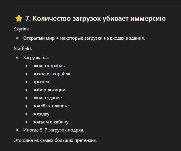 Во-вторых, в Скайриме всё-таки можно дойти от ворот Вайтрана до ворот Солитьюда пешком, без загрузок. В Старфилде между Неоном и Нью Атлантисом нет ничего кроме обязательной загрузки. Соответственно, этом "маршруте" нельзя ничего увидеть, ведь "маршрута" нет.