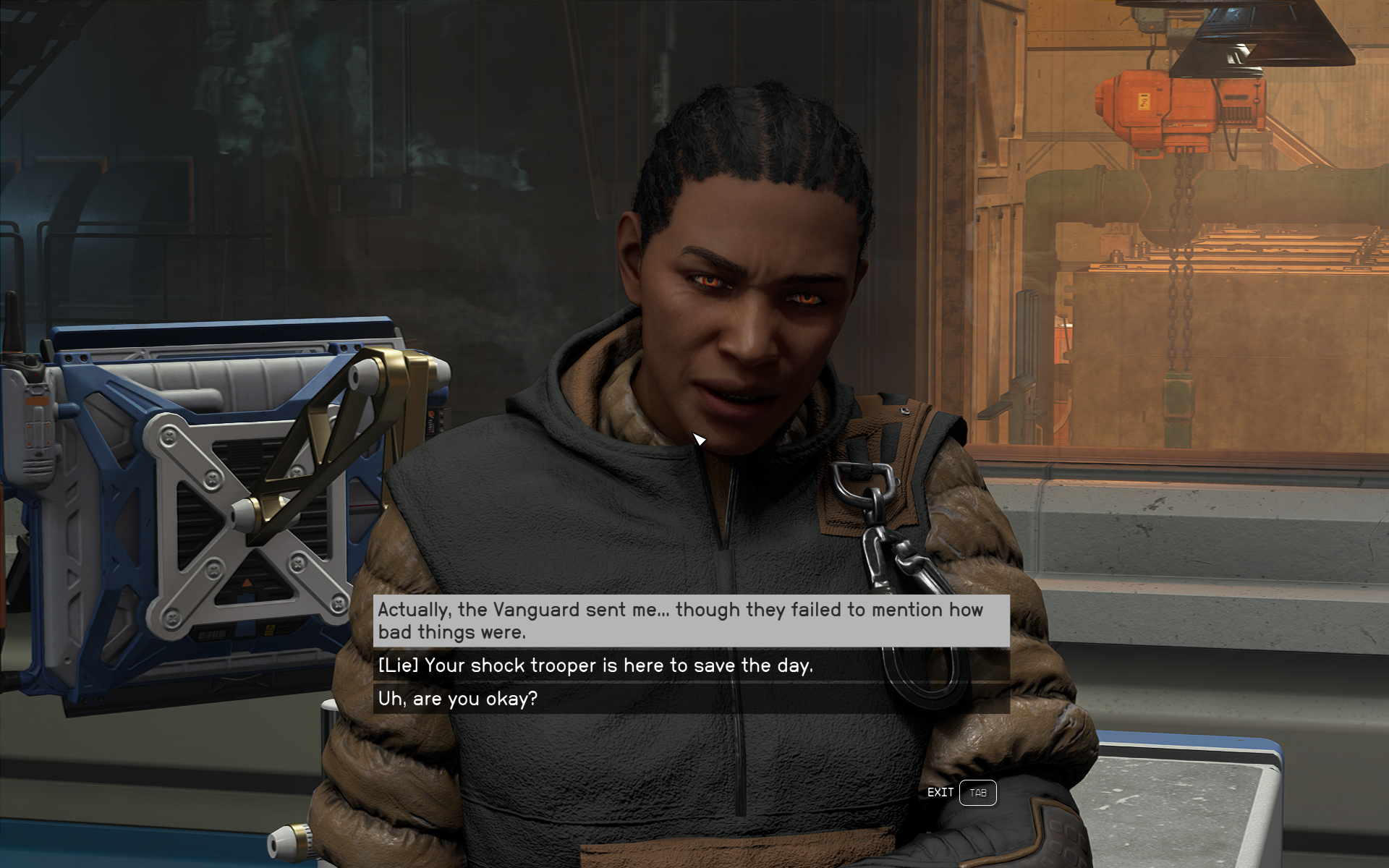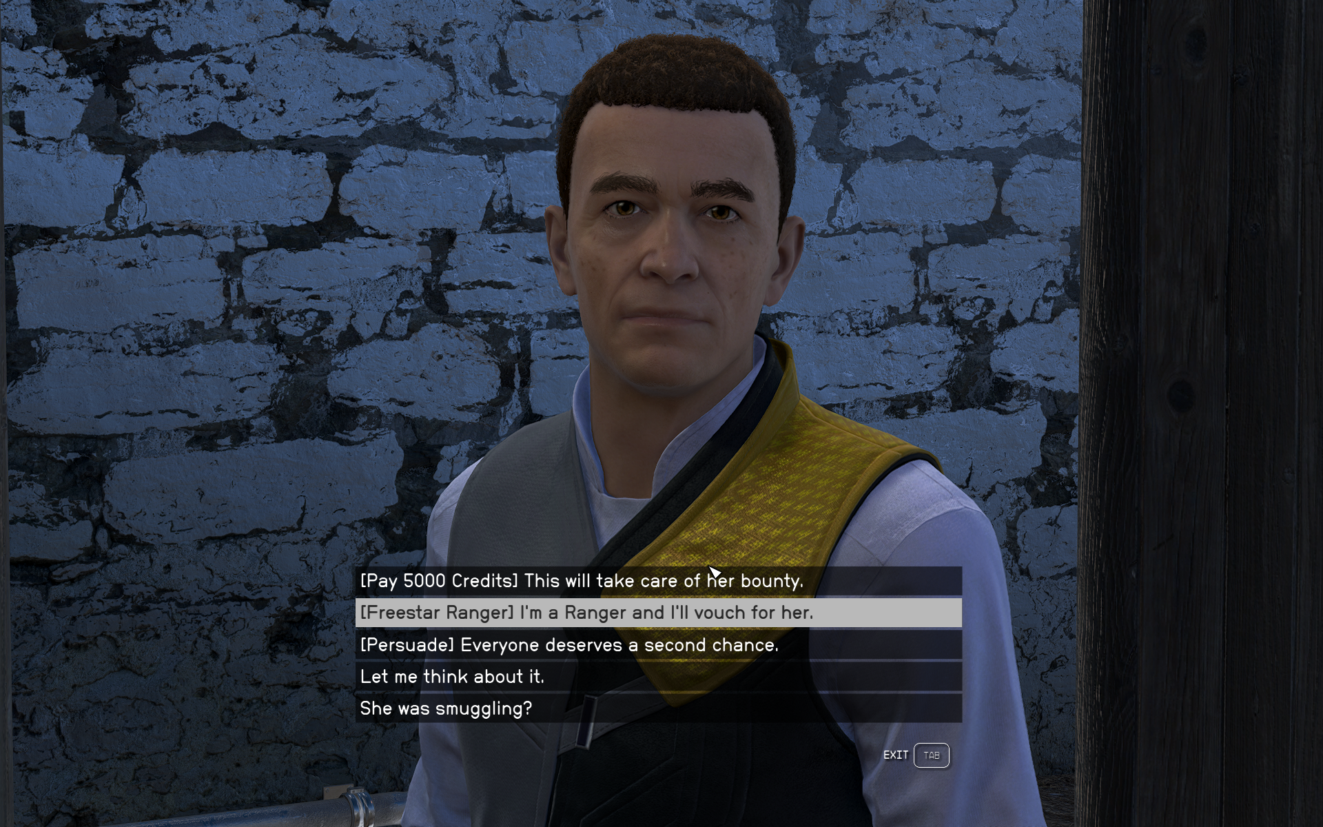 >>9956573 >Ты обычный шахтер, выкопал какую-то хуйню, Которая точно соответствует тому что ищет организация, ты готов сотрудничать, у тебя так же есть ценные сведения после контакта с этой штукой. Прилетевший персонаж, кстати, тоже в курсе этих галюнов, по этой причине верит гг. Он сразу же приглашает гг вступить в организацию. >приезжает дядя на Мерседесе Самый базовый и дешевый корабль. К тому же, он сам признается, мол "технически" это не его корабль, что бы это не значило на самом деле (возможно он его угнал или одолжил). >а я тут в шахтерском вагончике посижу с мужиками покурю сколько надо Во-первых, он отправляет тебя под командованием робота Васки, который тебя сопровождает до Созвездия. Во-вторых, пираты прилетели по ЕГО следу и он хочет разобраться с этим самостоятельно. В будущих квестах ты узнаешь, что он с пиратами на самом деле в нормальных отношениях и может договориться с ними.