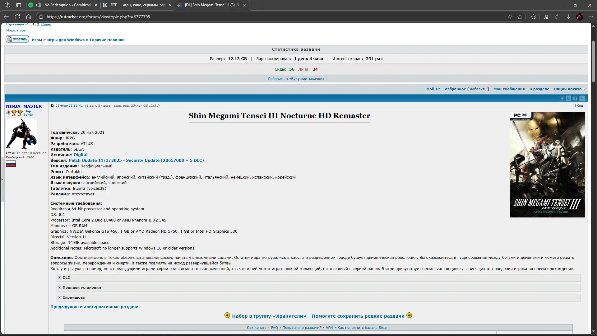 >>9957196 Да, читай старый NFO от SKIDROW —> https://nfomation.net/info/1692191942.skidrow.nfo >>9956587 >Да большинство разрабов со временем дюновы снимают сами Смешно. Большинство игр от SEGA до сих пор защищены DENUVO, и с них до сих пор не снята защита. Так же на части игр от BANDAI Namco висит защита, да этот список можно в принципе перечислять долго. Толку, то? >>9957334 Может быть, а может быть и нет. Кто его знает, а так пока трудно сказать, что это ренейм той же имперки либо же Voksi. А если же такие мысли лишь возникают из-за сбора донатов в BTC, ну я лично видел некоторых взломщиков в P2P-сцене связанных с софтом, аудио, которые делали абсолютно тоже самое. (собирали донаты) Единственное когда такое можно будет заявлять, когда сам Voices38 сделает что-то палевное или будет совершать действия которые делал тот же Voksi/Empress, и вот тогда уже со 100% увереностью можно будет говорить, что это ренейм, а пока, это домыслы. >>9957361 Отвечу коротко - набивает руку для дальнейших взломов. Отвечу не коротко - для более старых версий дерьмувы можно было написать автоматику, и начать взламывать игры благодаря специальным гайдам с того же кряклаба, но в более поздних версиях дерьмува начала использовать ядерные сервисы, и её стало очень трудно взламывать, даже те же самые старички с того же кряклаба просто плюнули на это дело, и забили большой болт. Хотя благодаря различным видеоконференциям где выступают различные программисты, ревёрсеры и пр, куче инфе в интернете можно во всём этом разобраться. И всё таки взломать/обойти дуньку. Но это делается - трудно. С наскока ты просто так это не сделаешь. (я специально опустил все подробные детали, так как это будет во первых скучно, и во вторых сама дунька вещь специфическая скажем так)