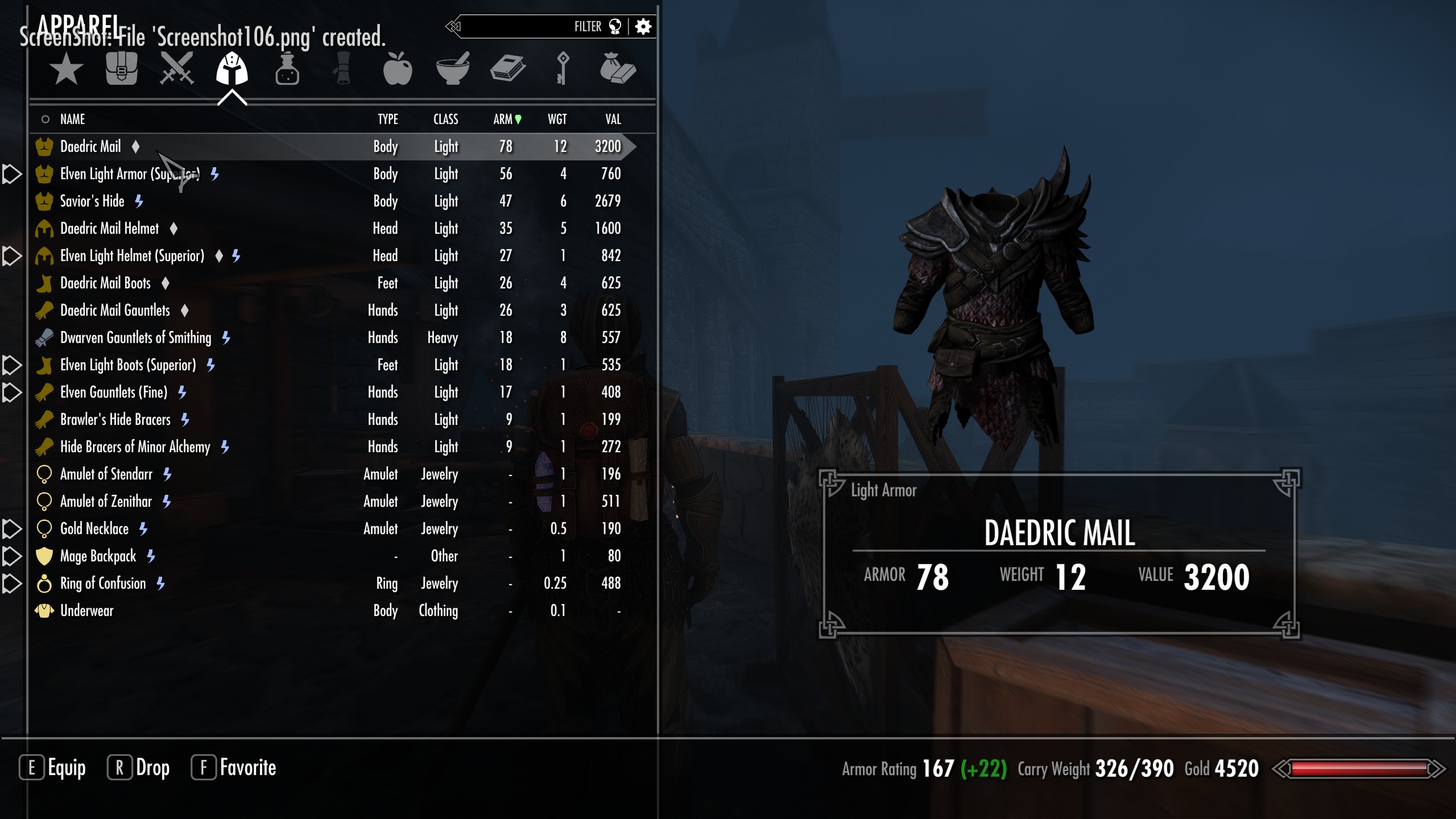 Практически за каждый квест в награду дают какой-то супер-сломанный уник. Лук который делает тебя невидимым? Пожалуйста. Здоровенный дрын, кольцо которое на 50% снижает затраты магии? Конечно. Или вот - скриншот, за выполнение простенького квеста, в награду дают полный комплект даэдрической брони (одной из лучших в игре), что бы самостоятельно сковать которую нужен навык выше 90. И вот этот квест вы можете выполнить буквально на первых уровнях. Нахуя так делать? Скайрим и так не самая сложная игра. А с этими заданиями так вообще можно одеться в имба шмот ни прикладывая никаких усилий.