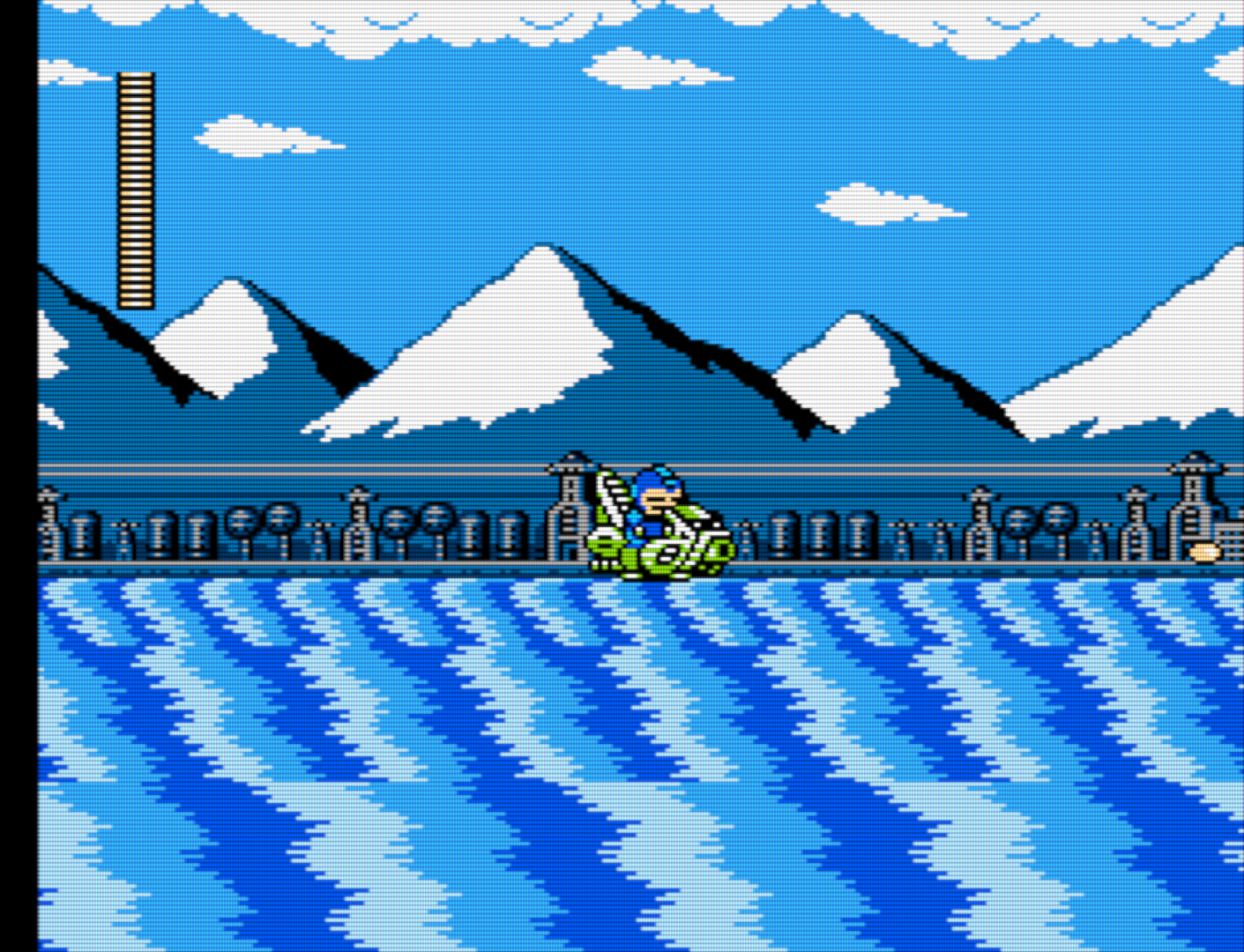 Лучший левелдизайн среди первых 5 частей, на каждом уровне свой прикольный гиммик: Star Man - уровень в космосе, позволяющий высоко прыгать. Gravity Man - изменение гравиации, из-за чего перемещение по земле сменяется перемещением по потолку. Прям как в игре VVVVV - отсюда, видимо, и спиздили идею (или из Metal Storm, который вышел еще раньше). Gyro Man - платформы проваливаются из под ног. Crystal Man - с потолка падают кристалы, пока ты пытаешься перепрыгнуть через инстасмерть ямы (с не самым простым таймингом, стоит заметить). Wave Man - прыгаешь по шарикам, прежде чем они растворятся, а потом вообще ездишь на мотоцикле по воде. В общем весело, кайфово.