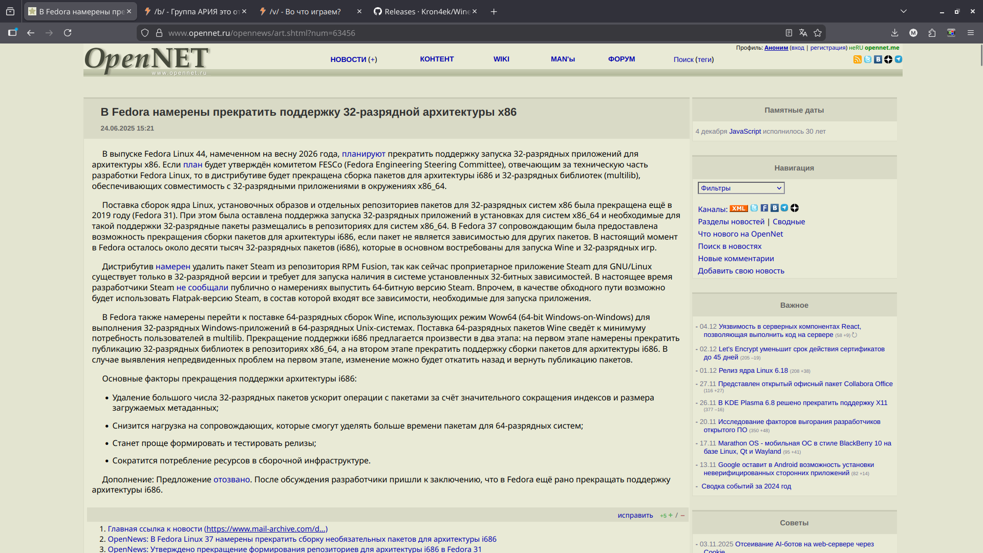Бля, кодировал кодировал видос, с нихуя пека ребутнулась, а там 20% оставалось. Ебаная федора чё-то выебнулась крч при загрузке. Надо было рач ставить нахуй или кешиос. И прикол знаешь в чём? - Ебанаты с роскомпараши блочат репы арча сука, что его ставить нужно с тремя весёлыми буквами, и это не хуй, а пизда пиздец как не удобно. Из-за действий в каких-то пару минут ебусь теперь.