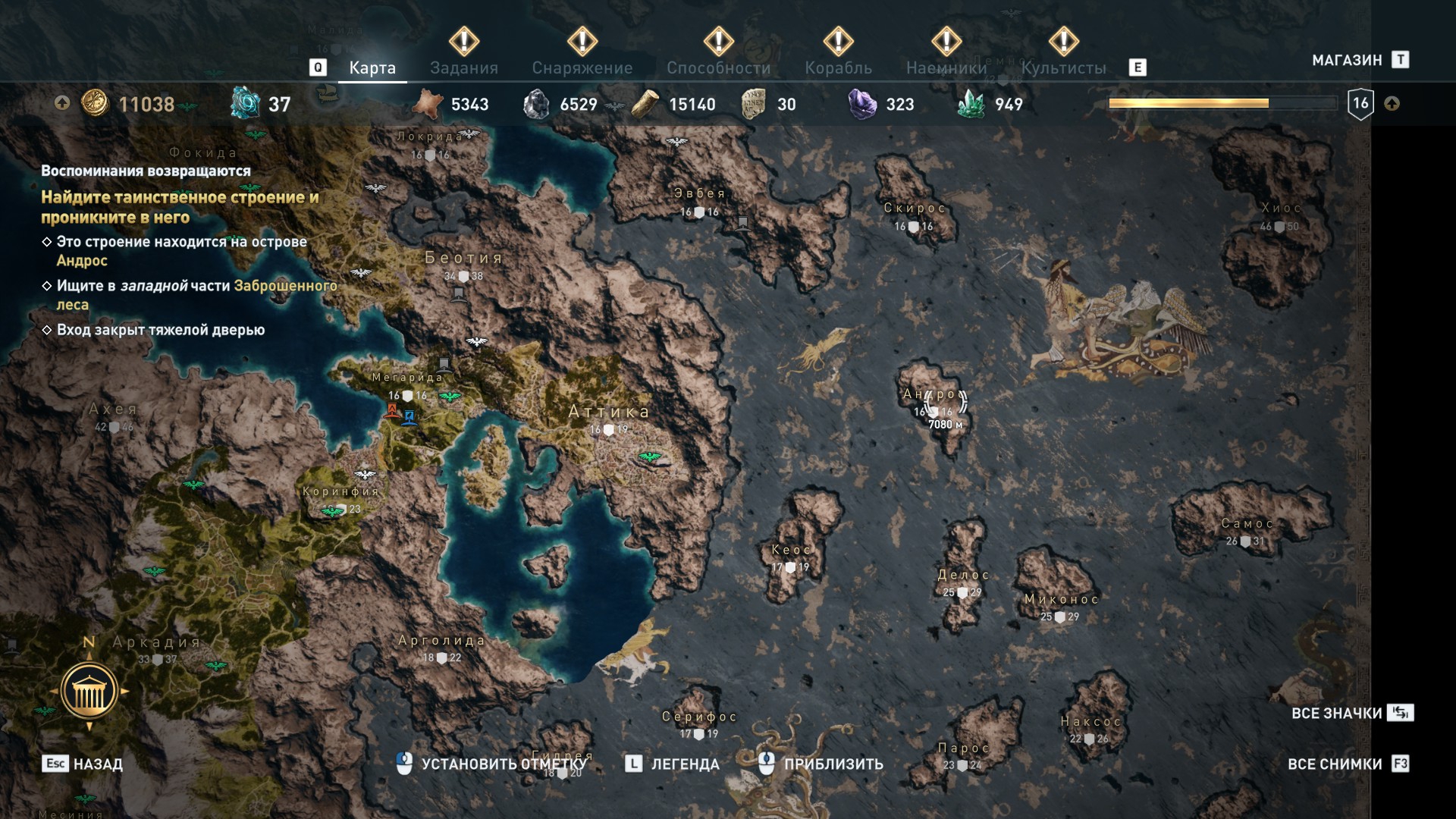 Все вопросики зачищены в этой локе. Газуем по сюжету. На корабле давно не гонял, надо бы в эту точку газануть жестко за трезубцем, но попозже наверное.