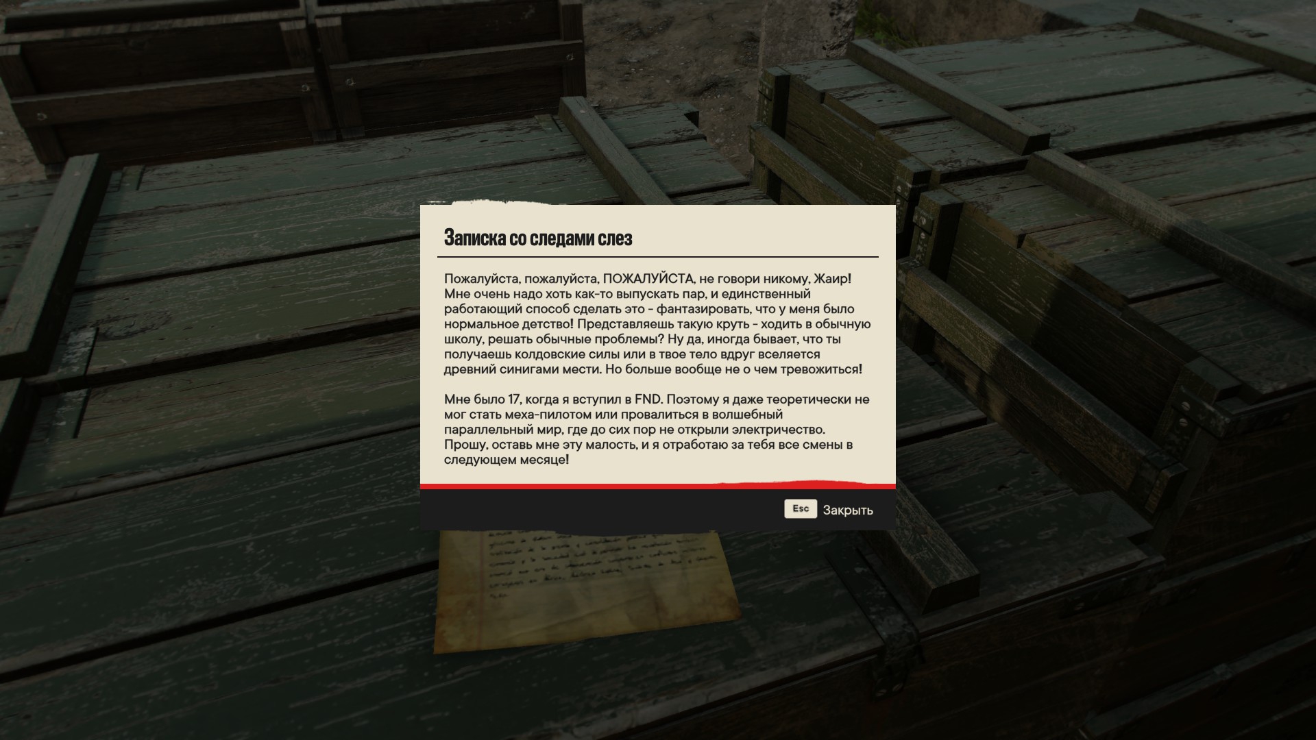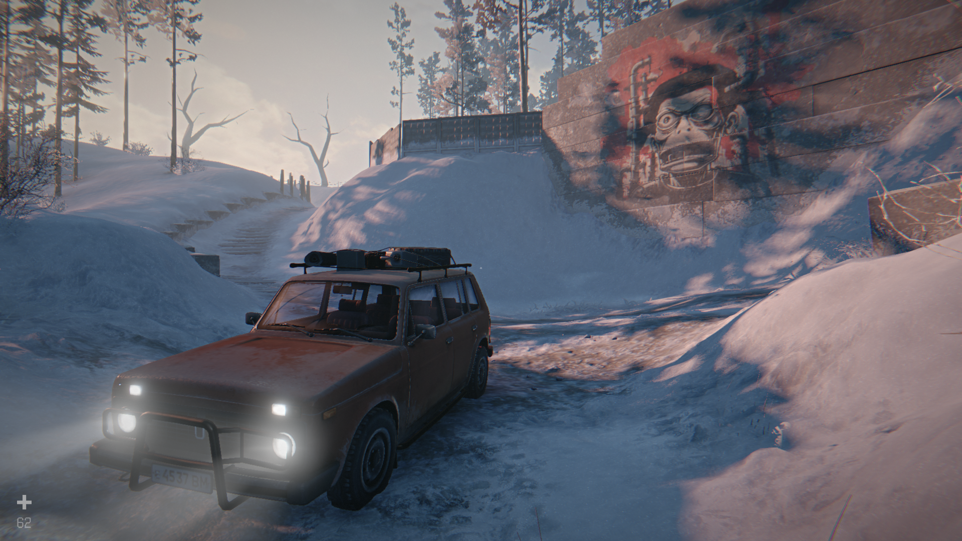 Подробнее лучше про геймплей напишу. Это закос под сурвайвол-хоррор и выживач одновременно. От последнего тут - это лутинг, в том числе еды, которую нужно есть периодически, а так система холода. Больше половины игры - это или улица, или холодные места, где просто со временем отнимается ХП. Медлить нельзя. Но с этим можно мириться в целом, расходники для крафта есть, аптечек можно делать. Это просто духоты добавляет некой. Патроны тоже можно крафтить, но не особо нужно, лол, ниже напишу почему. Аптечек я 2 или 3 за игру скрафтил. Духоты добавляет и управление машиной, где ради иммерсивности автор (буквально 1 человек, если музыку не считать) сделал управление на Ниве с передачами: 1-4, нейтралка, задняя, пониженная. В реальности легче водить, чем в этой игре, особенно переключать передачи эти. Это просто не нужно, вот и все, это просто неудобно делать. Хотя бы заглохнуть не получится, если бы это было в игре - я бы дропнул еще на 1 половине игры. У меня и так были подобные мысли, но затерпел, и не зря, ибо дальше без тачки, да и просто привык. Игра, как понятно, имеет боевую систему. Стрельбу, как понятно из наличия крафта патронов, в том числе. Общий минус этой стрельбы - инерция камера, которая вкупе с прицелом-точкой и странными хитбоксами по ощущениям какой-то хуйней является. В игре есть 2,5 вида оружия вообще: 1. Большой гаечный ключ. Основное оружие где-то в 65% схваток, даже при наличии патронов, лол. Есть блок, который любой урон в ближнем до 1%, есть усиленный удар. Этим оружием любой наземный враг, кроме юркого совсем, выносится. Большую часть боссов я или чисто им гасил, или станил дробовиком, а потом - им гасил. Кстати, боссы легкие, кроме робоучилки, лол. 2. Дробовик. Слабоюзабелен в целом из-за парашного прицела и инерции камеры. Патронов от него достаточно, в принципе, их можно крафтить. Используется против юрких наземных или летающих врагов, а так же против последних двух боссов, ибо они достаточно лютые в плане. Есть еще босс, который радиацией урон наносит, но там можно и сблизи его нормально вынести. А обычные враги двуногие выносятся ключом. Есть есть робопауки, они - тоже, наверно. 2.5. Нищий узи. Урон - кал просто. Я начал последнего босса валить, но хер забил, ибо просто каличный ПП. Так же это неполноценное оружие, ибо его можно не брать, а так же нельзя крафтить патроны. Но это не обидно, ибо оружие само по себе хуевое. Так же есть несколько сегментов с погонями и прятками, но это херня, один из них вообще на головоломку похож, а еще один из них - можно без пряток пройти, ибо босс не ваншотит, лол. Из инвентаря есть так же дрон, который нужен для решения головоломок, а так же некоего поиска лута, и сканер электроники, который на радаре, похожем на оный из Чужих, показывает лут некоторый, а именно - батарейки, а так эе лампочки, машину и прочее. Кстати, о батарейках, и сразу о головоломках. Заряд тратится не только на фонарь, но еще и на чтение планшетов с записями, головоломки, миниигры со взломом, кинопроекторы. И, если не считать фонарь, тратится заряд быстро, нужно искать батарейки. Но для этого необязательно сканер использовать, можно самому пошарить по локациями.