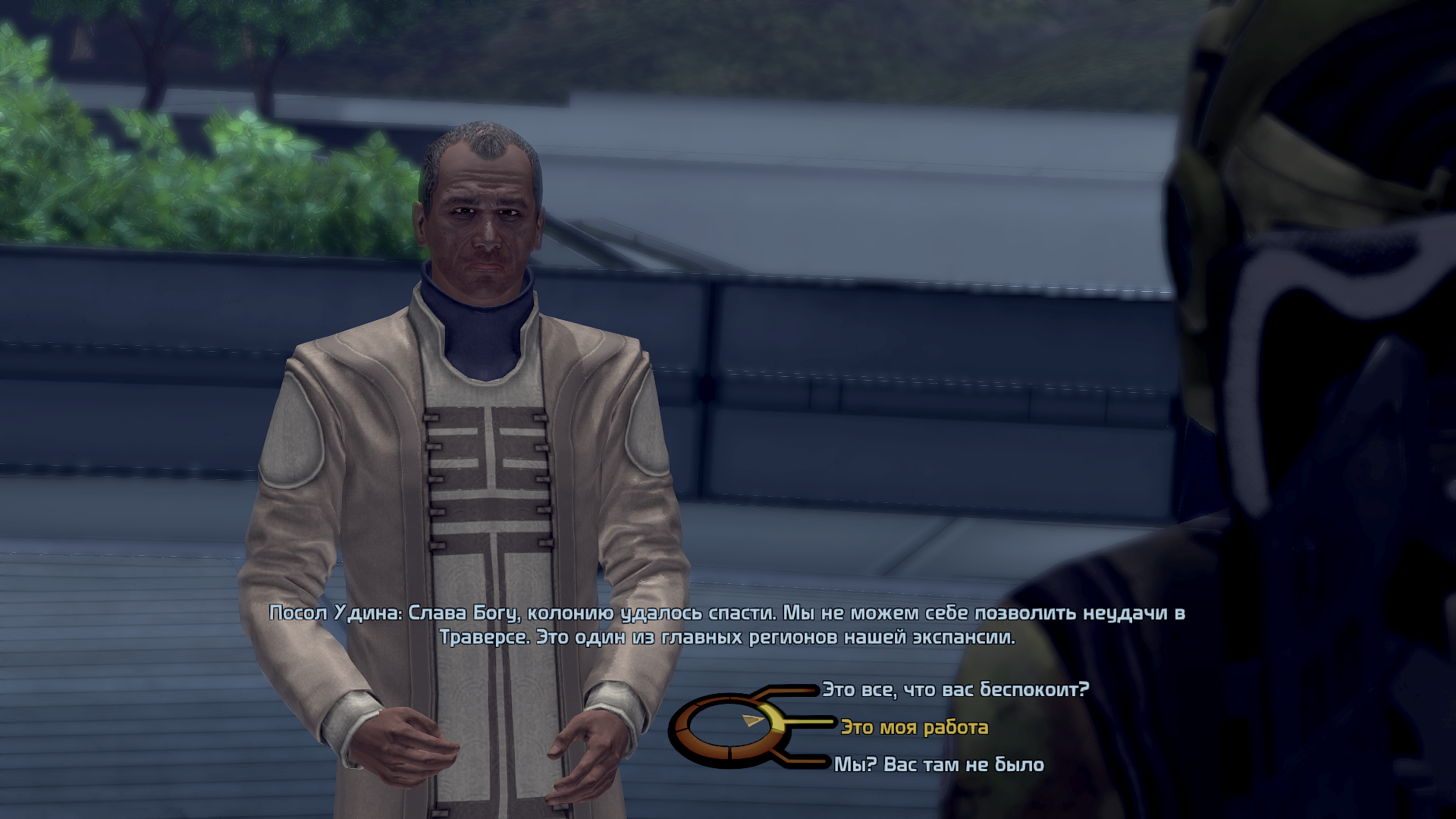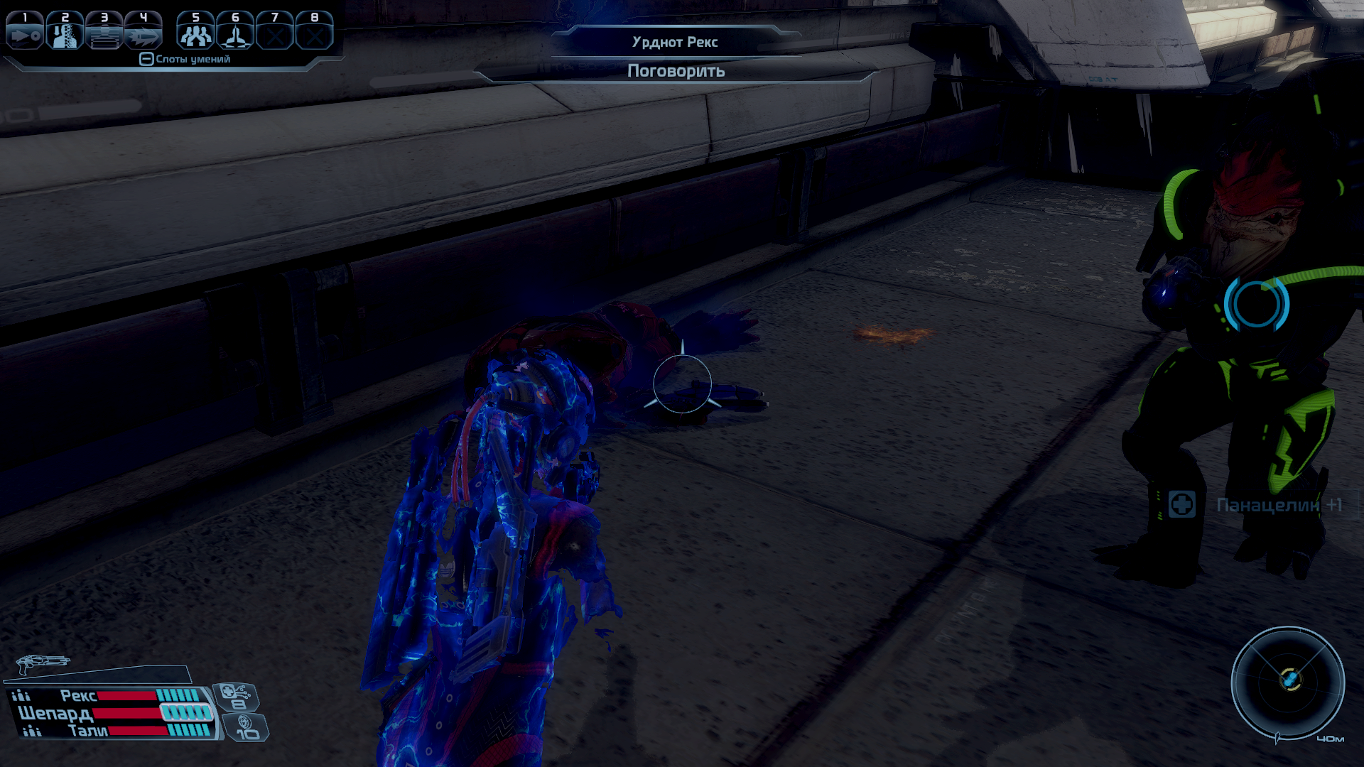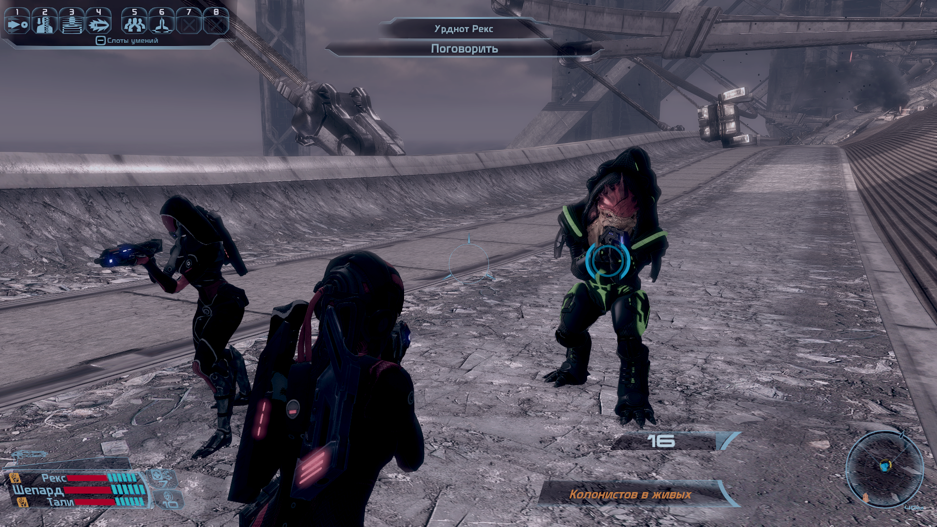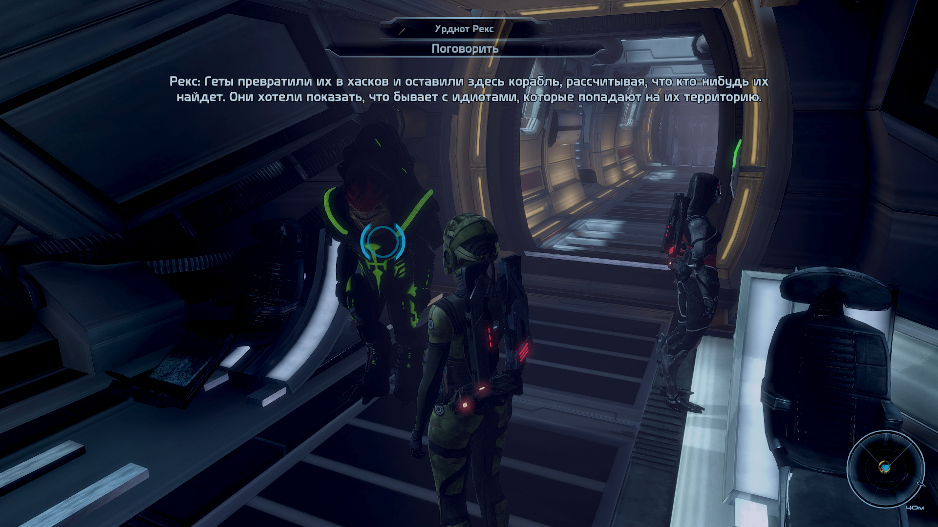 Ну вот, парой слов уговорили кипящую голову Рекса. Забавно что он даже не пытается сопротивляться если.. не хочется с ним говорить слишком много, ну вы понели. Шепард его просто пристрелит как беспомощную собаку. Не очень логично кстати то что всего-то пару циклов назад мы ему внушали что нужно заняться судьбой своего народа и он так легко от этого отказался. А во второй части вообще кричит от радости "Уииииии! Боевая сестра!"