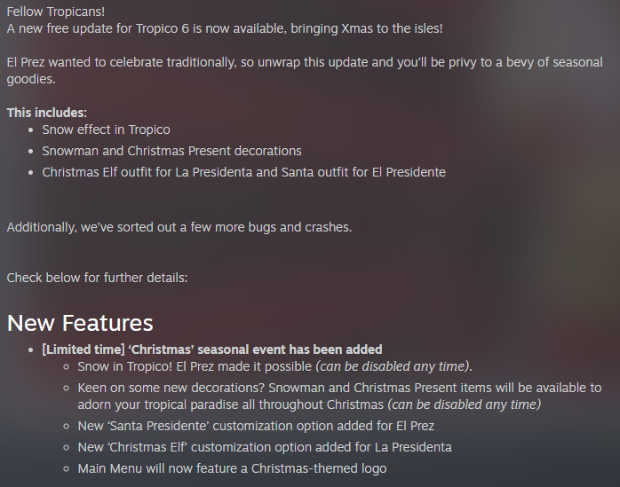 Если бы я в Стиме хоть за что-то отвечал, то продавал бы такие игры рождественскими бандлами в соответствующее время.