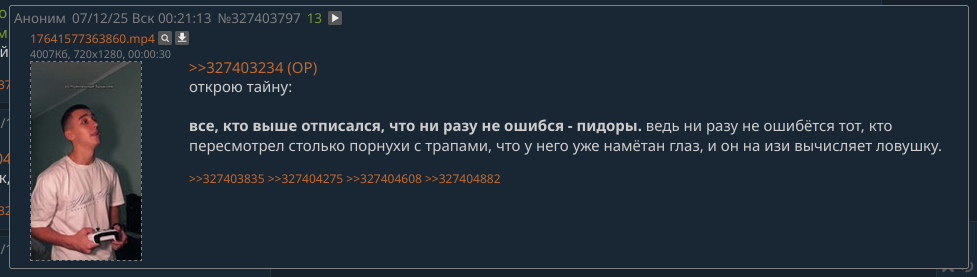 А сейчас мы видим как 1200-пидарок приревновал тред к чулочнику и тоже вылез из-под шконки отбирать внимание Петушки делят территорию, возможен скандал и даже бои, сейчас в этой схватке победит тот, у кого в конечном итоге окажется больше юшек, а проигравший покинет тред и будет вынужден пережидать, пока альфа-мамка не удовлетворит свои вниманиеблядские потребности...