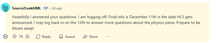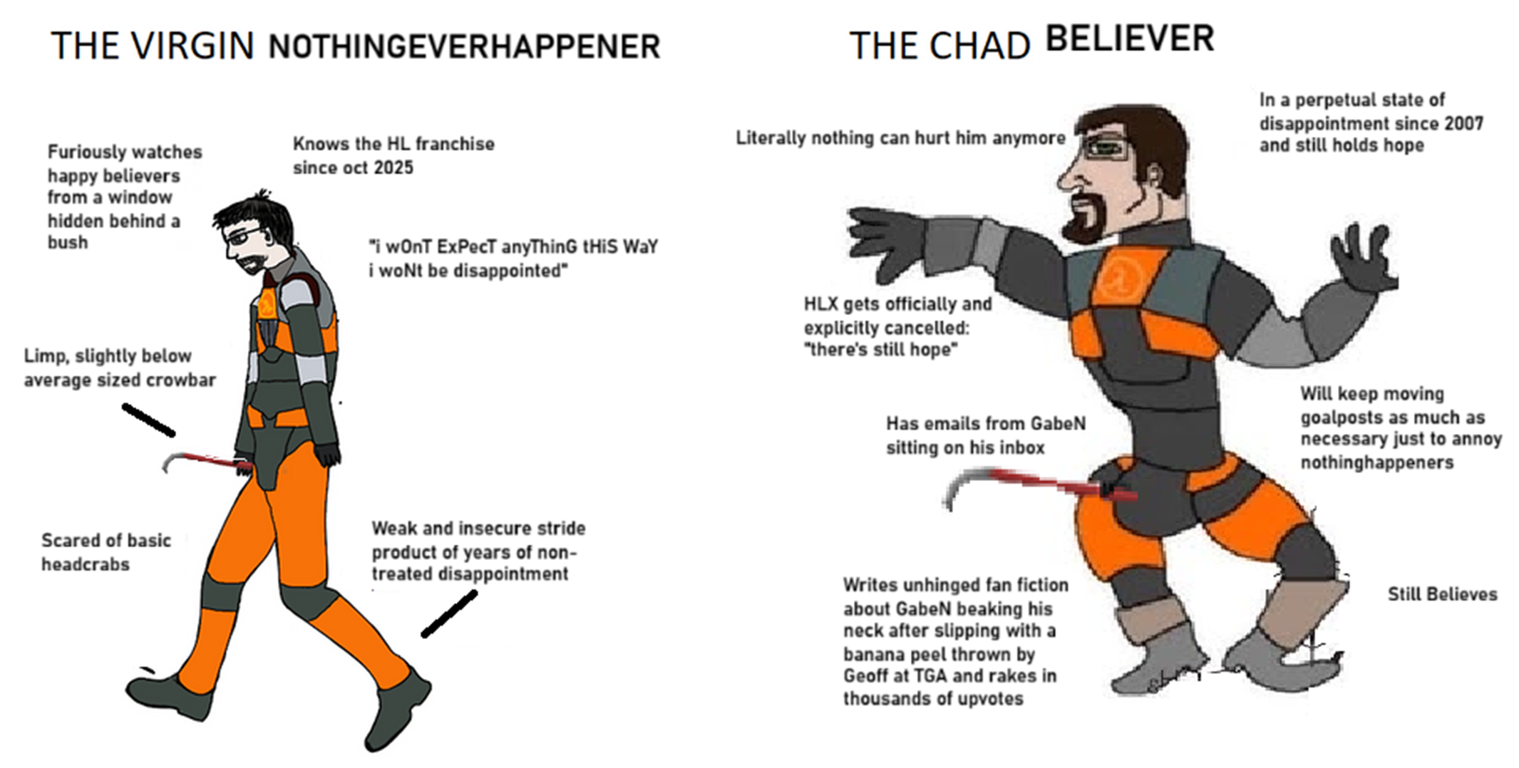 Там даже Килли вбросил жестко, выполнив дизайн в виде спектрометра из ХЛ1. И комменты полны хоупиума и беливов. Сами Килли - протык Габена. Лучшего места и времени просто не найти. Если не будет, то можно сказать, что игры тупо не существует в каком-то минимально играбельном состоянии.