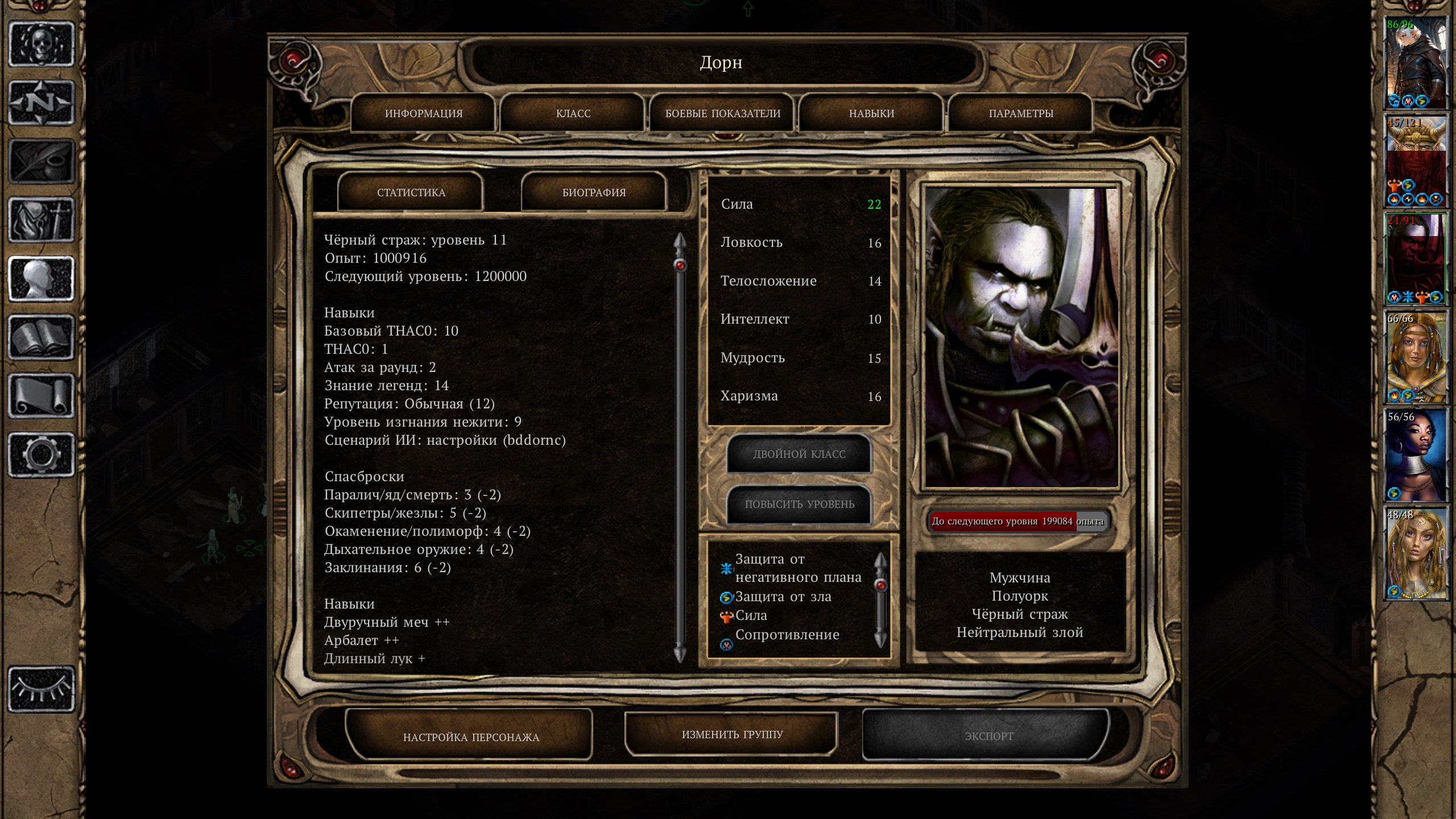 19+4 промах. Лолчто. Ну ладно. Спецом засейвсками и нароллил, что бы мейн перс завалил его. Так-то подсосы у меня воин и полуорк блек гвард конечно лучше с руки наваливают. Хм, смотрю спелл. Ну думаю сейчас орк еще более ебущей машиной будет. А статы всего на +1 поднялись. Мдэ, наебалово какое-то. Ну типа он не кастер нифига и только научился 2 лвл спеллы читать. Нюансы игровые такие. Пока не попробудешь и не потестишь - не узнаешь. Ведь по описанию он уже прибавку +3 к статам должен получать.