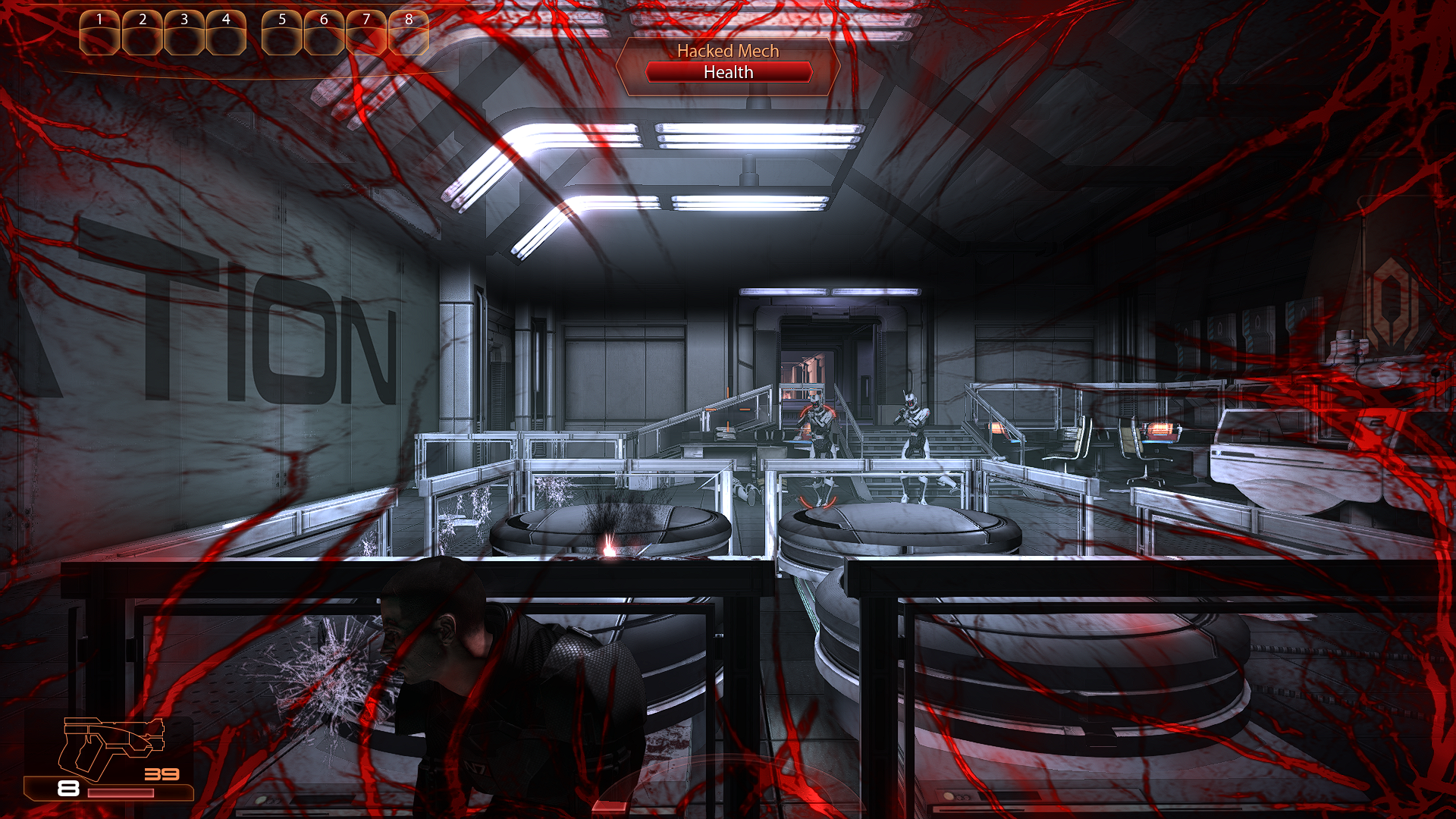 Геймплейно игра это просто эталонный шутан двухтысячных, в которой мы бежим по кишке (тонкой или толстой, как пойдет) от точки А до точки Б, смотрим там катсцену и перемещаемся в следующую кишку. Повторить, пока кишки не кончатся понятно чем.