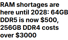 Подорожание пошло сразу за презентацией IPhone 17. Под новое поколение RAM должны быть новые производственные линии, поэтому DDR4, которая перекрывает потребности в играх на 100%, никуда не денется. Ну а чтобы выебнуться перед коллегами в курилке есть много других вариантов.