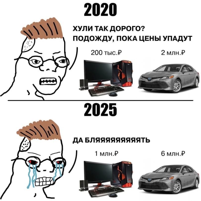 Да ваши пеки вообще нахуй не сдались никому, это скам альтман в соло выкупает поставки чтобы конкуренцию придушить. Геймеры тут так, чисто за компанию под раздачу попали.