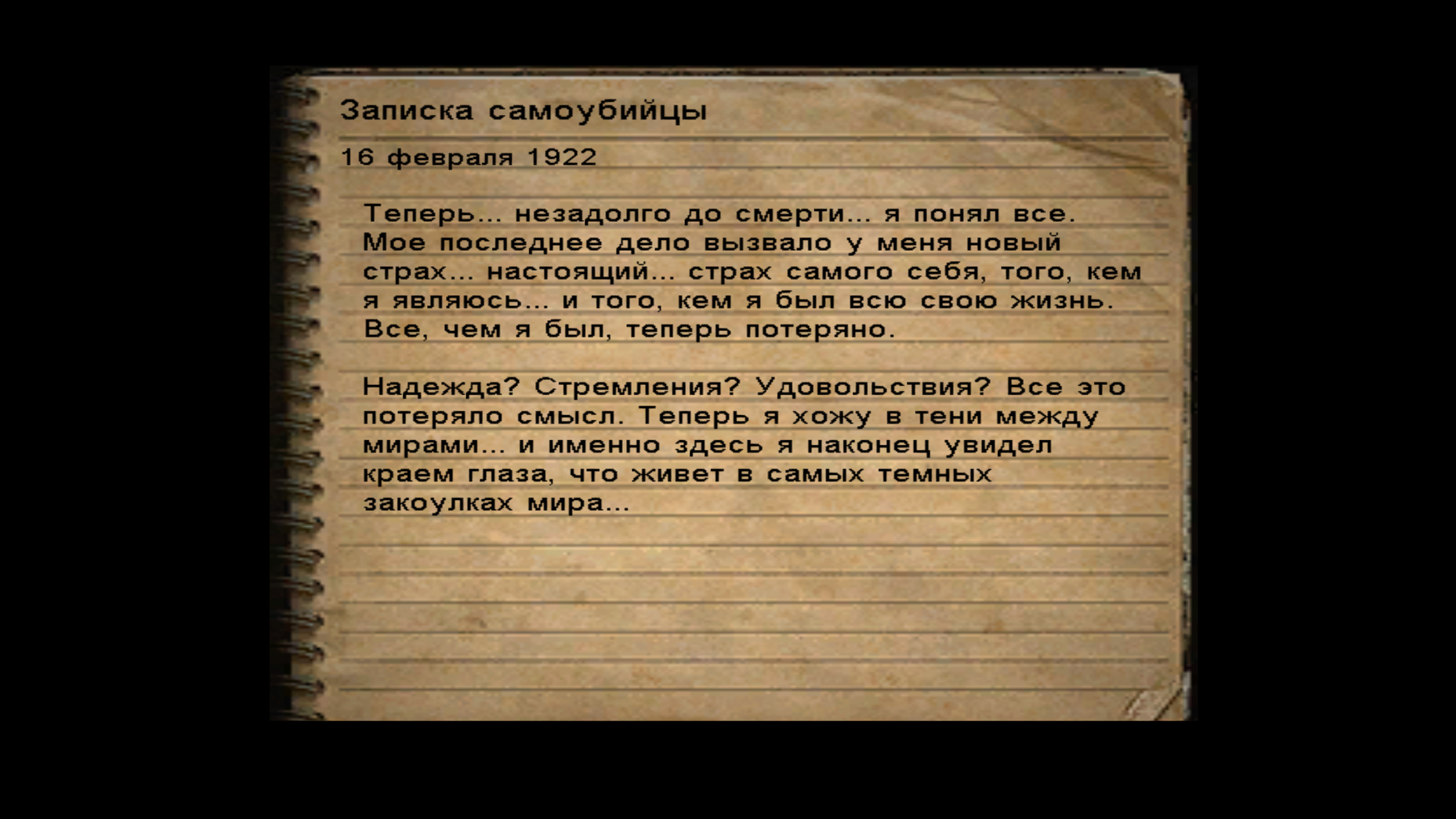 Да уж. Это было незабываемое умопромачительное атмосферно насыщенное шедевральное невероятной красоты наводящее какойто первобытный страх путешествие. 98.7/100. не 100, потому что это говно баггует по-страшному или много где может не сработать скрипт (я так целый час гулял по огромному зданию ища выход, оказалось нужно было забраться на табуретку и потом на шкаф, а я сразу с лестницы на шкаф пытался прыгнуть, и еще много подобного). ну в остальном правда всё идеально, определенно входит в топ5 сыгранных мною игр.