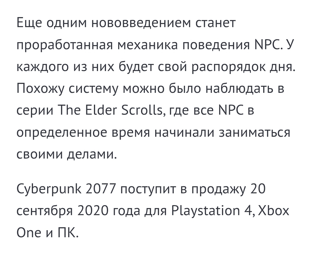 >>9985451 >Обычный открытый мир, каких много Обычно в открытых мирах есть чем развлечься, как минимум самая убогая гта предлагает песочницу, а киберпук нет, у него мир мертвее чем гта 3.