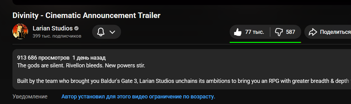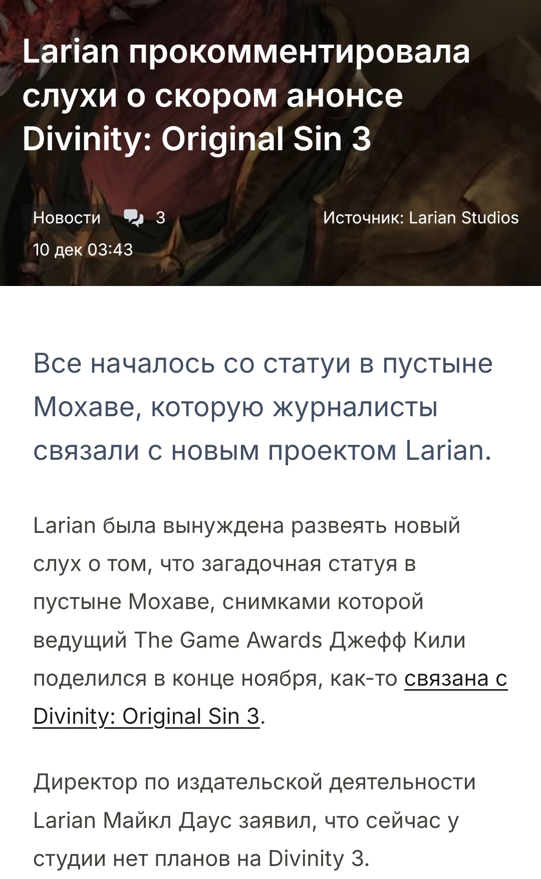 Larian Studios анонсировали свою новую игру Divinity и представили синематик на Game Awards. https: