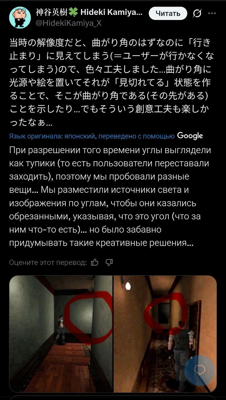 >>9978870 Он там чёт разговорился пиздец, уже который день, так все секреты и расскажет. Понравилось что они ещё на первой плюхстейшн думали как игроку показать что есть поворот в конце коридора а не тупик, всякие там картины и прочее обрезанными показывали а дохуя еблуш даже на даже спустя годы обсер делаои когда думаешь что тупик а оказывается поворот был. А некоторые индюки и сейчас умудряются.