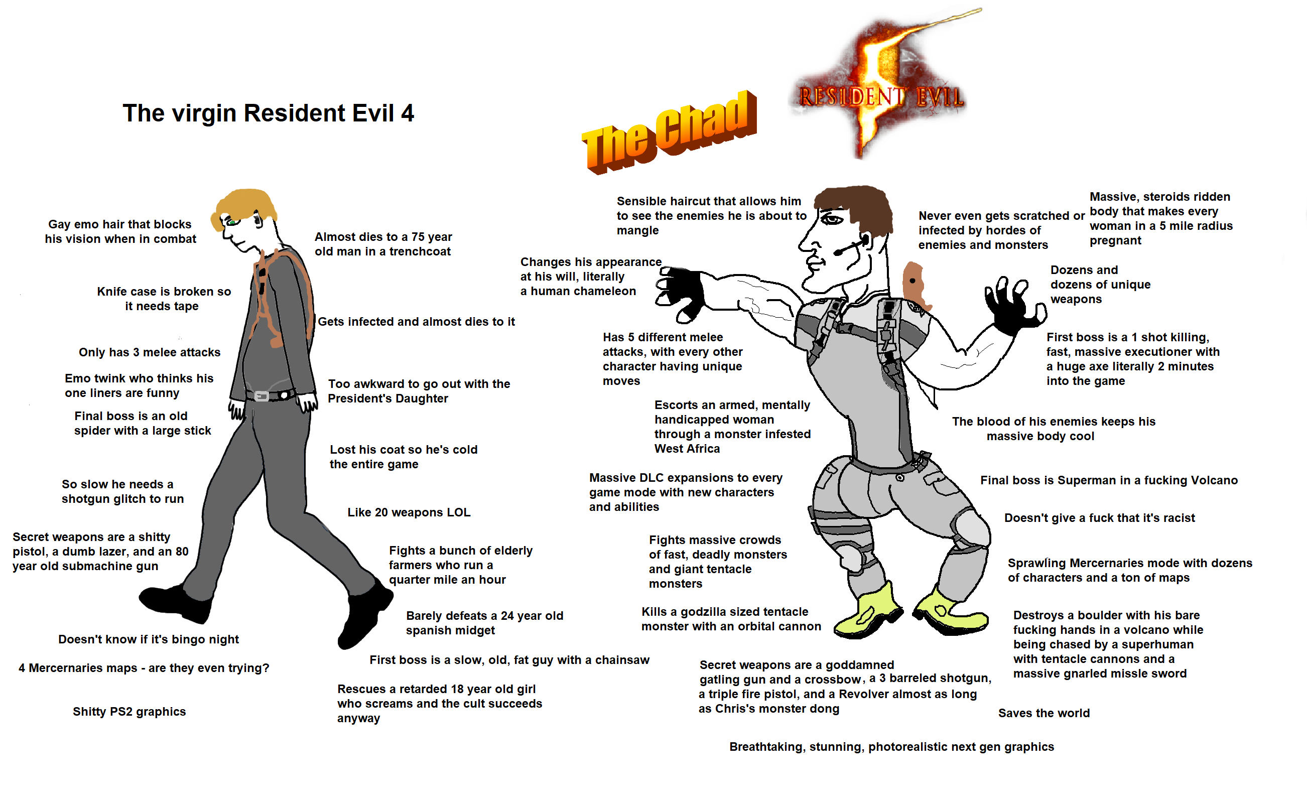 >>9985881 >Бизнес ничего лишнего Да что ты говоришь, капком уже бы давно из Леона африканца сделали, но что-то не наклевывается до сих пор. Держатся чертяки, но в чем они опередили западный геймдев — это в сильных женщинах, причем в женщинах здорового человека, вся серия RE женщиноцентрична. 1 - Джилл, 2 - Ада, 3 - снова Джилл, 4 - снова Ада, 5 -Джилл и т.д. мужчины здесь для важного фона.