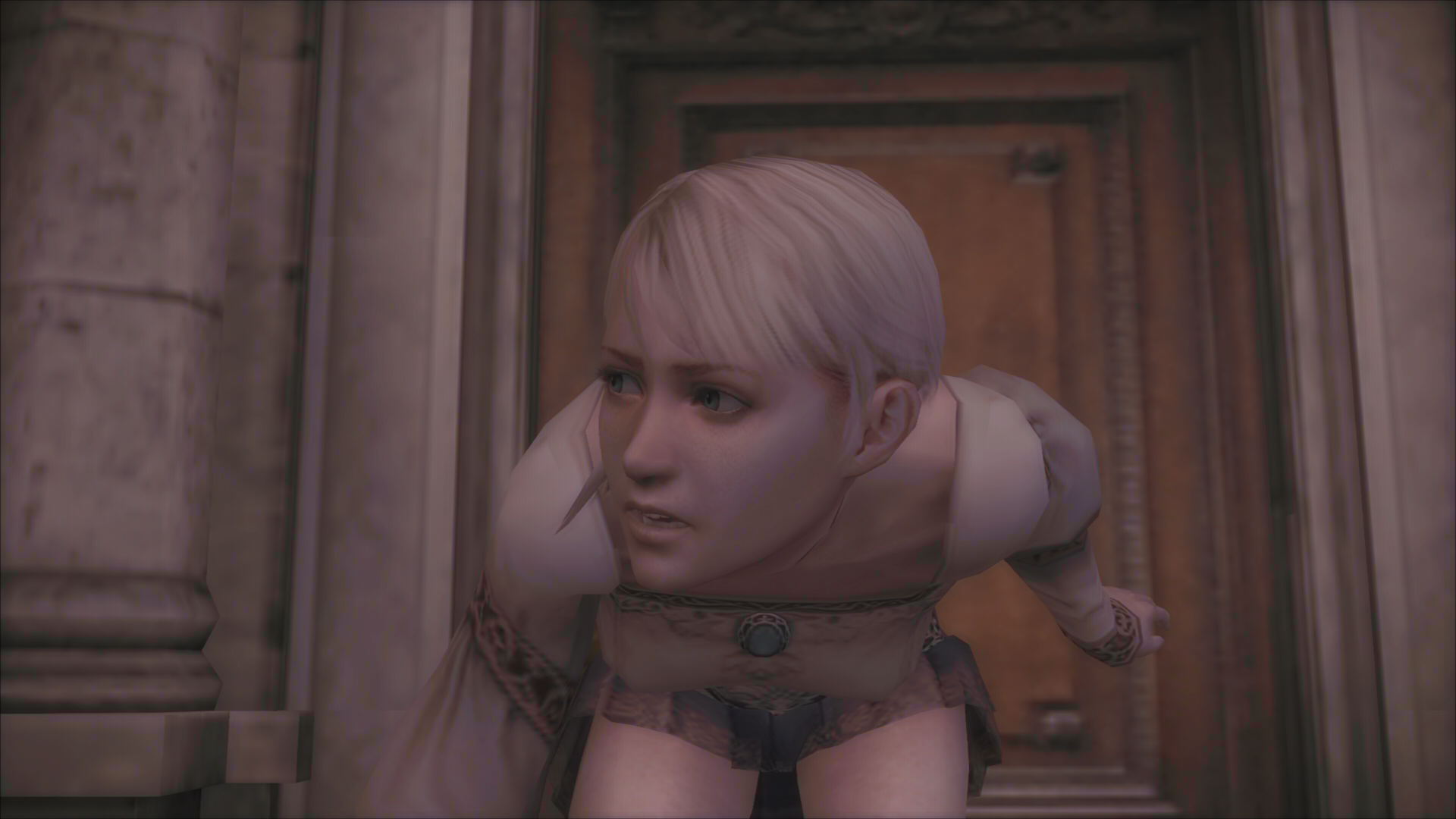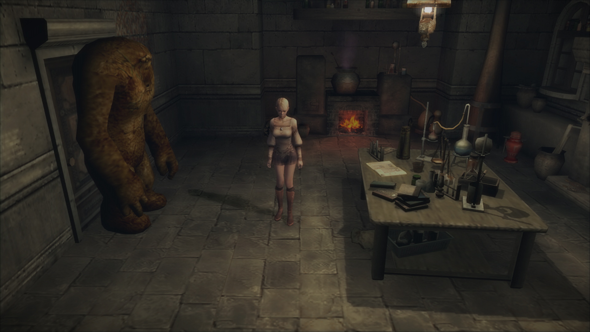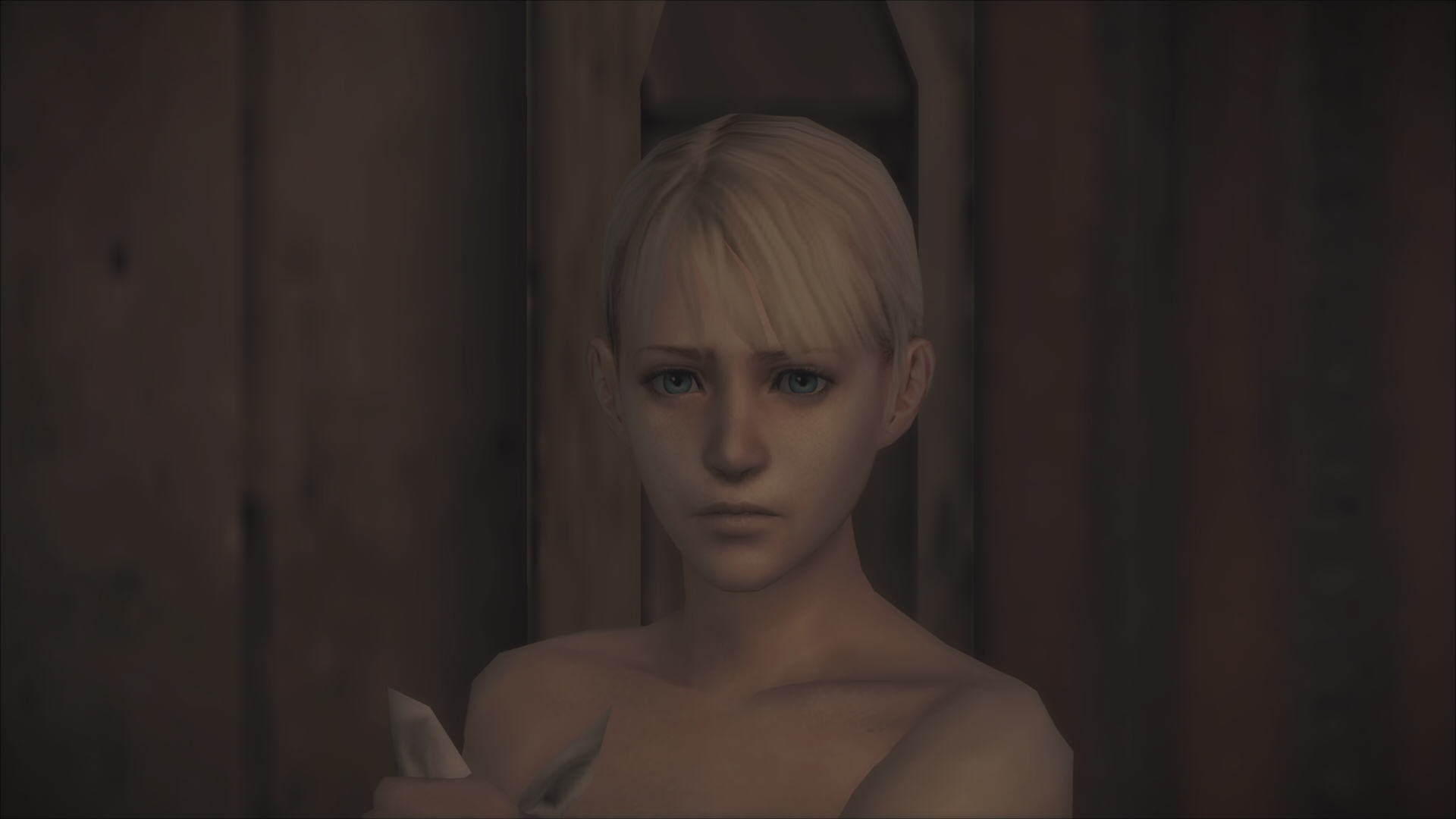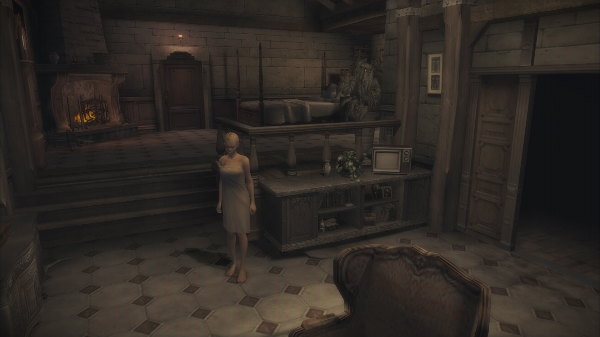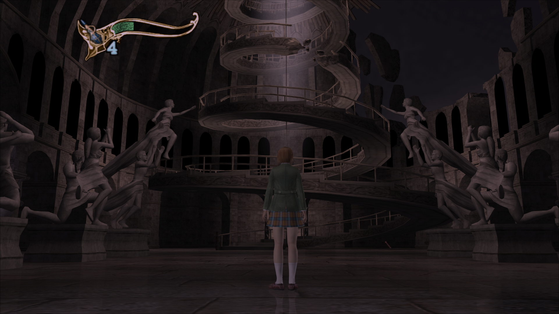 Геймплей. С одной стороны, это все та же формула "появился враг? беги в комнату и прячься в шкафу", с другой - здесь полный контроль над персонажем, нормальное управление (в противовес передвижению с помощью курсора в прошлых тайтлах), плюс есть святая вода, которой можно поливать врагов и которая восполняется на каждом углу, так что ты далеко не беспомощен. И это кульминируется в последующих боссфайтах, где ты убиваешь каждого из преследователей (их 4 в игре - по одному на каждый уровень) из лука, заканчивая зрелищным, грандиозным финишером, напоминающим спелл из какой-нить ЖРПГ. Эти босс-файты объективно помойные, но я почему-то кайфанул с них, не могу сказать почему. Но есть спорные моменты: 1. Враги появляются слишком часто, из-за чего ты всегда бежишь в место, где можно спрятаться. Это именно ОДНО место на локацию. После того как спрятался враг не пропадает моментально, а еще ходит туда-сюда некоторое время. Для чего это было сделано? Неизвестно, но спасибо наличию ускорения в эмуляторе, потому что было несколько моментов, когда я сидел полторы минуты в туалете в ожидании, пока враг таки соизволит съебать, после чего я вылез и он ПОЯВИЛСЯ СНОВА, заставив идти обратно на отсидку (прям у него перед лицом открываешь дверь, заходишь внутрь и начинаешь "прятаться"). 2. Если управление удобное, что позволяет запросто доджить врагов, то значит нужен какой-то подвох. И он тут есть: если враг наносит удар поблизости к главной героине, то вне зависимости от того, задоджил ли ты эту атаку - у тебя заполняется полоска "паники", а после заполнения ты теряешь контроль над персонажем и следующий удар отправляет тебя на гейм овер. Получается, что враги режут воздух, но ты все равно проигрываешь, доджи/не доджи - похуй. Это все, конечно, тривиализируется наличием святой воды, но, тем не менее, ощущается дешевым и нечестным: как бы есть атаки, но фактически от них не увернуться, так что все сводится к наличию/отсутствию ресурсов, а если у тебя их нет, то ты автоматически проебал, потому что в этой игре враги очень быстрые и от них невозможно оторваться. Опять же, это именно ощущение кривого геймдизайна, но игру не портит, т.к. она слишком простая.