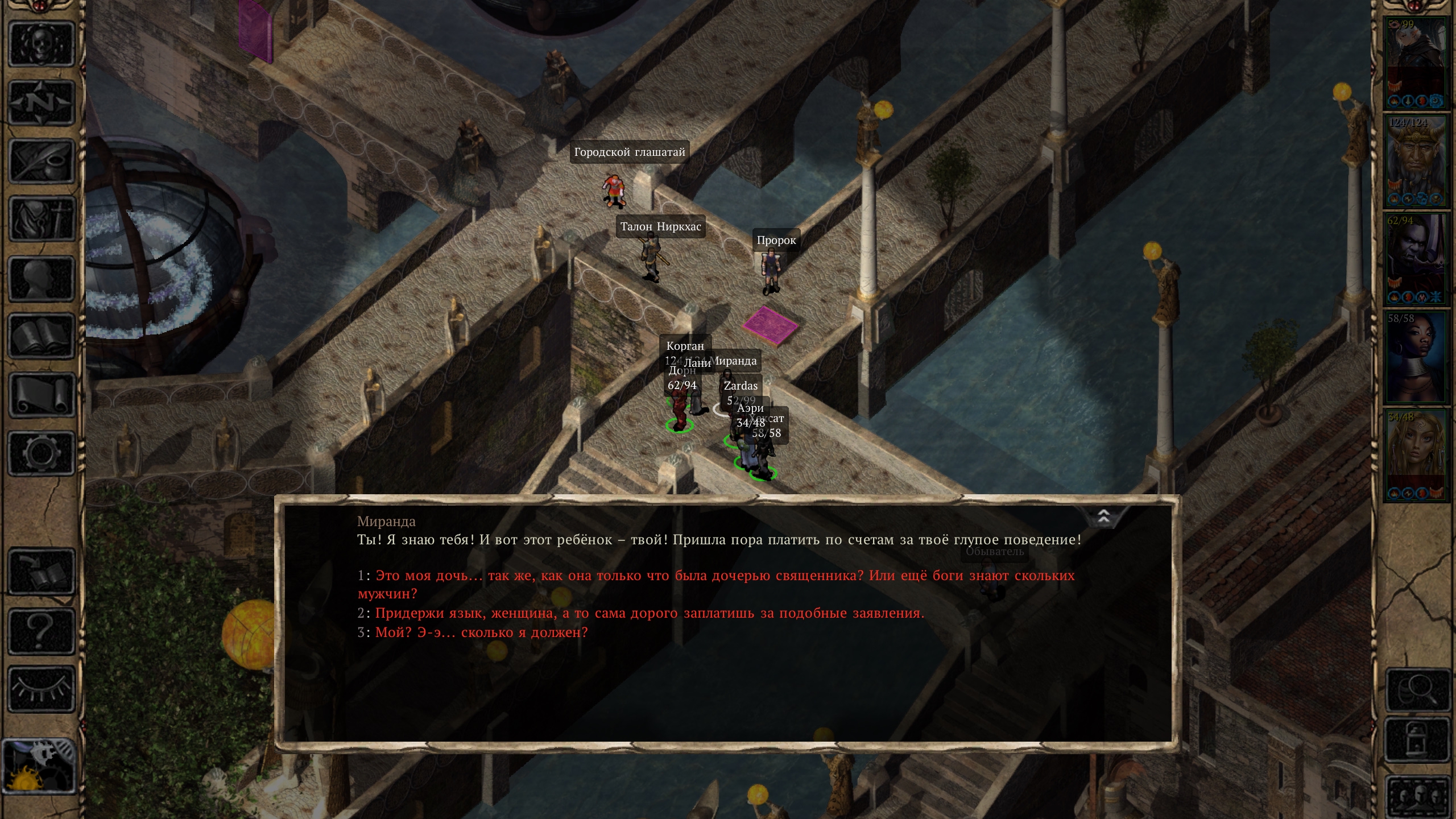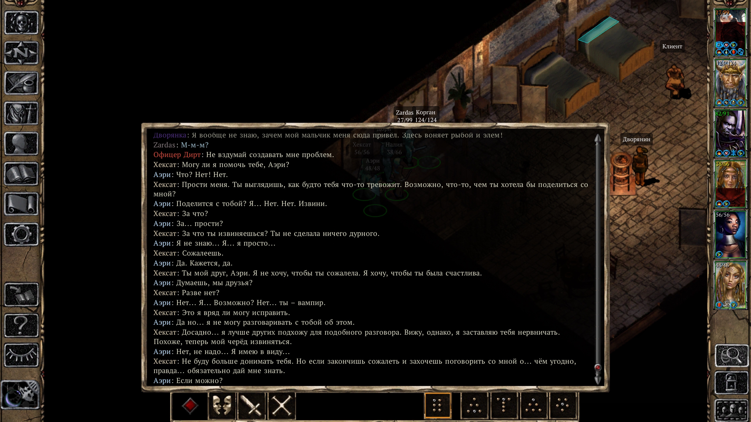 Заромансил эльфийку. Можно не трахать, а просто полежать вместе :3 Ну вообще я все варианты попробовал, конеш. Можно и обидеть. Знатную девку у меня её недожених забрал. Пока возьму паладина из канализации в пати. Как раз йоба меч хоть испробую, а то его только добрые палы таскать могут. Еще йоба катану +3 нашел. Но еще не испробовал. В том здании вообще довольно крутая пати была. Но я заабузил и с лестницы по двое их приманивал и разбирал на изиче.