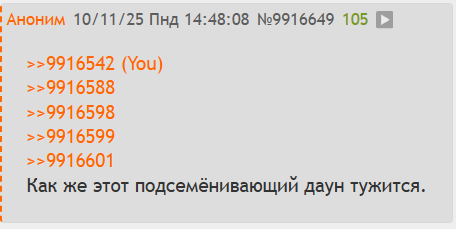 >>9963204 Только представьте что газонюху так разорвало его пуканьеро, что он уже испробовал все методы. И к абу бегал жаловался, и вайпал тред своими фетишами, вайпал коридорами. А теперь пошел вайпать раздел своей подпаленной жопой. Еще и затратил времени на фотошоп мемасов для своих тредов. А потом он кого то называет шизом, когда затратил времени в разы больше на то, чтобы прекратили замечать, чем те, кто просто обсуждают то, что всех заебало. Хотя он мог просто скрыть. Ах да, не мог, ведь ему для видимости массовости нужно с 10 браузеров сидеть и везде надо скрывать. Какой же газонюх потешный.