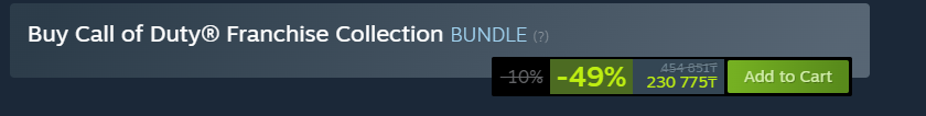 >>10005774 Уже напарывался на эту скидку. Если на ру акк хотите гифтом взять, то бандл не загифтуется, придется по одной покупать, имейте ввиду ананасы.