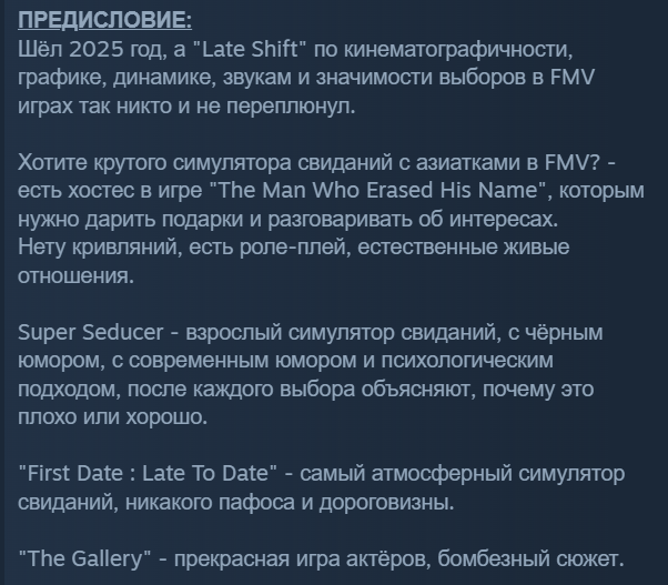 У Илюхи Мэда было пару дней назад прохождение на стриме, душнейшая хуита, такую только по скидке 90% брать, а лучше вообще не брать, покупая душный кал, ты показываешь разработчику, что на такой мусор есть спрос и он будет клепать дальше такие поделки.