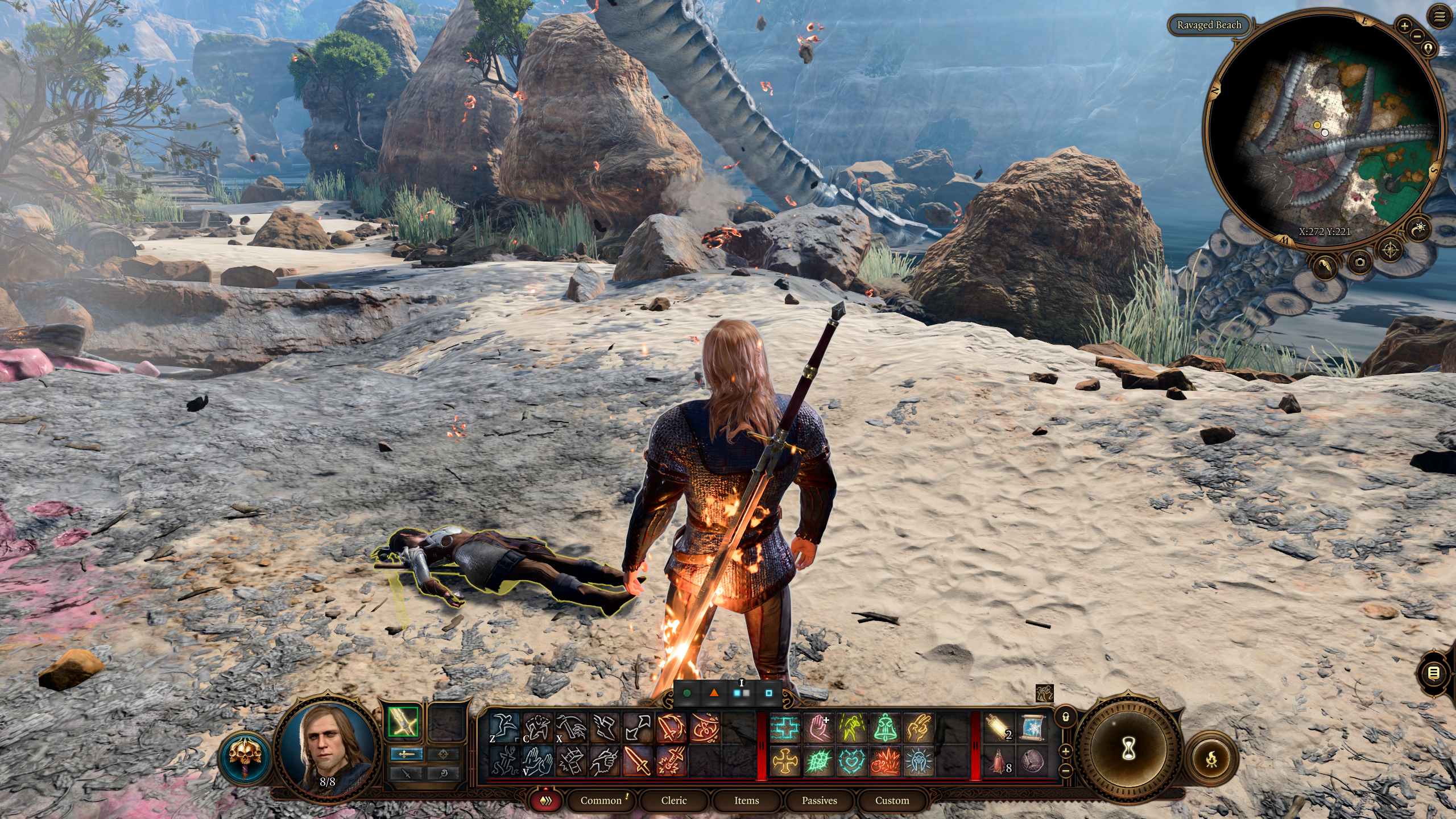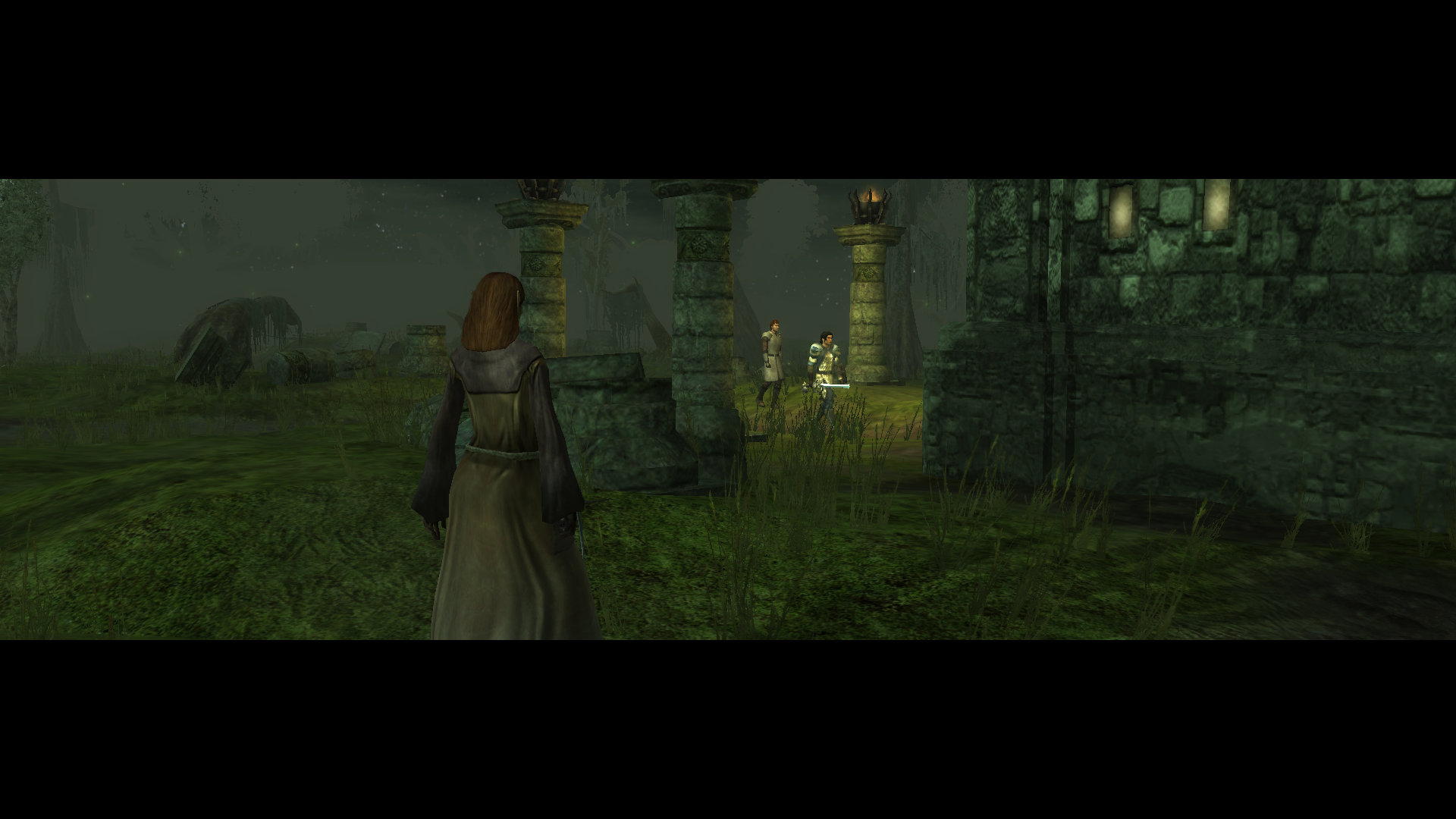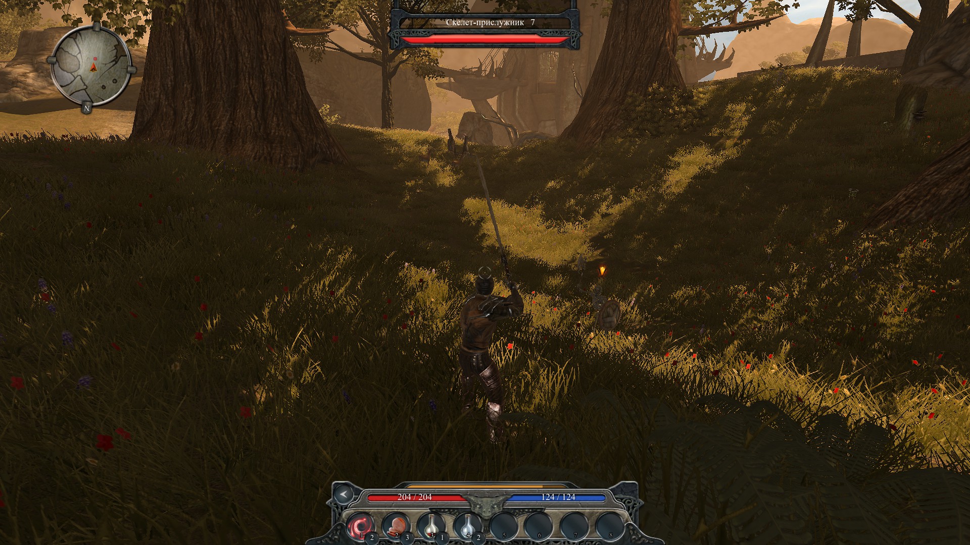 В Экспедицию играем, конечно же. Кто и зачем все эти мечи понавтыкал на пик1? А тем временем девочка осталась совсем одна, даже подозрительный типок её бросил, а вокруг что-то непонятное и мобы бродят. К счастью, на этот момент девонька раскачалась до состояния Терминатора на стероидах, поэтому смело бросается в бой. Мобы падают, старикан из виллы даже пукнуть не успел, как выхватил пизды и применил чит iddqd. А раз так, пора команде спасения отдыхать в лагере и придумывать новые планы.