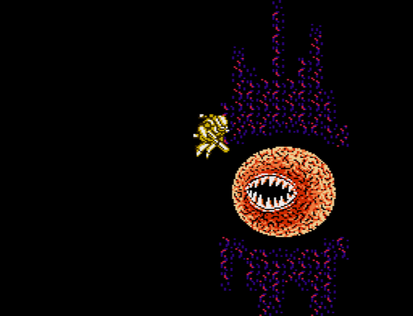 Бодди-хоррор элементы - это, пожалуй, самая отличительная часть игры. Мы буквально ебашимся против живого организма, который захватил целую планету.
