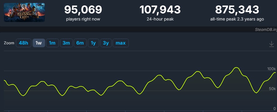 Я играл на релизе соло. А сейчас вот наконец собрались кооп пройти. Игра настолько популярна была, что даже крайне малый процент(всякие переигрывальщики, коопщики и тд) все равно дают вот такой большой онлайн. Ты не спрашиваешь, что делают 12 человек спустя пару лет в какой-нибудь ноунейм игре, просто потому что это в абсолютном значении мало, но относительно пикового онлайна может быть такая же ситуация как и у бг3.