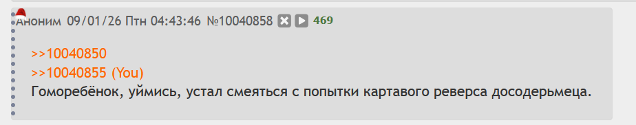 Ну, что и следовало ожидать от досоребёнка. Мозга нет и не будет. Явно родничок не зарос.