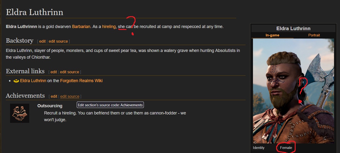 >А горит у игры от жирнечей цифродрочеров, это как те которые чудят 5днд и дрочат на 3.5 - веть там билды и можно дрочить калькулятор. Хотя нормальному человеку нужно приключение а не циферки считать. Логвинов и его чувство Приключения. Приключение заключается в том чтобы не быть проткнутым в жопу. Если серьёзно, то приключения в доспарашке нет. Даже посмотрите на карту. В bg1 были огромные карты ты на самом деле их изведовал, разные регионы, перемещался по ним и доспарашку где задроченные вот эти улочки и на 2 квадратных метра по 10 врагов. Какое тут чувство приключения или исследования. Даже нельзя лагерь разбить, ты перемещаешься в какое-то просто пространство с нихуя, а в bg1 на тебя могли напасть в ночлеге, нужно было тактически выбирать место где отдыхать чтобы врагов не было. Вот оно - чувство исследования, приключения, настоящего не картонного мира. И так во всех аспектах игры. Доспараша - это даже не Забытые королевства. Там от них ничего нет. Они не имеют никакого отношения к этой серии игр и франшизе. Где Тифлинги выглядят как Камбионы. Блядь, даунам хоть бы поиграть в Планескейп Тормент или книжки почтить чтобы узнать, что Тифлинги не обязательно крылатые, красные, хвостатые и рогатые. Это смешно.
